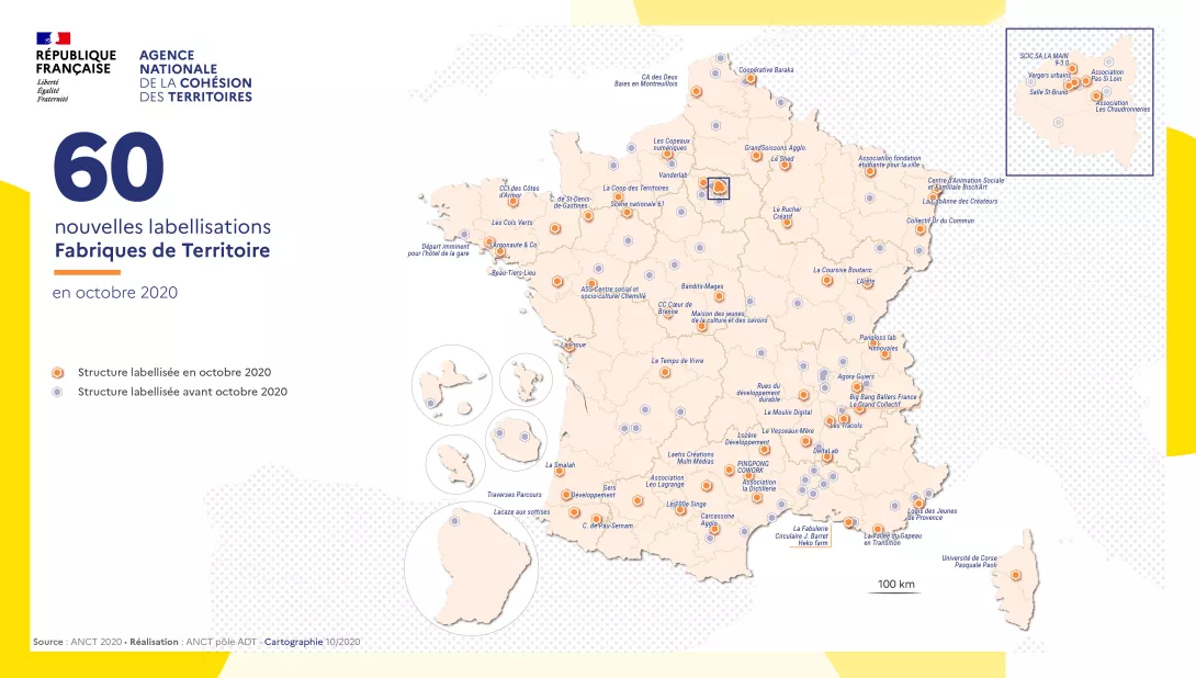 Fablab, espaces partagés ou d’inclusion numérique, sites de services d’intérêt général, friches artistiques ou lieux culturels… : 60 nouvelles fabriques ont rejoint les 110 tiers-lieux déjà labellisés. Grâce à ce label, elles vont bénéficier d’une subvention de 150 000 euros chacune sur trois ans, afin de soutenir l’amorçage de leur projet, leur rayonnement au-delà de leur territoire d’origine, la constitution de leur équipe, sa professionnalisation et la recherche de leur équilibre économique.