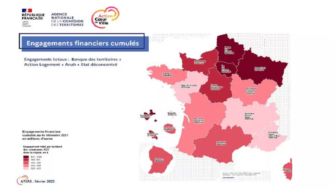 Le 15 février dernier, l’ANCT a publié un Atlas Action cœur de ville qui retrace, sous forme cartographique, les chiffres clés, résultats et premiers impacts de ce programme de revitalisation des centres-villes, prolongé jusqu’en 2026.
