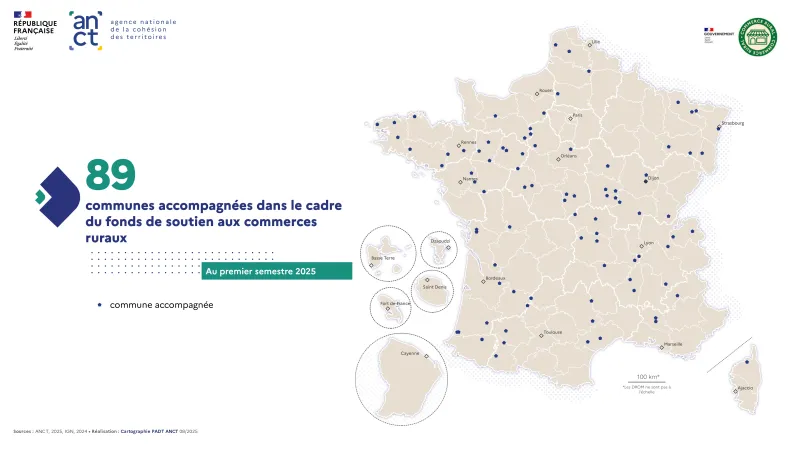 La ministre déléguée chargée du Commerce, de l’Artisanat, des Petites et Moyennes entreprises et de l’Economie sociale et solidaire, Véronique Louwagie et la ministre déléguée chargée de la Ruralité, Françoise Gatel, ont annoncé le 22 juillet 2025 les 55 nouveaux lauréats du dispositif de reconquête du commerce rural, dans le cadre du Fonds de soutien au commerce rural, opéré par l’Agence nationale de la cohésion des territoires.