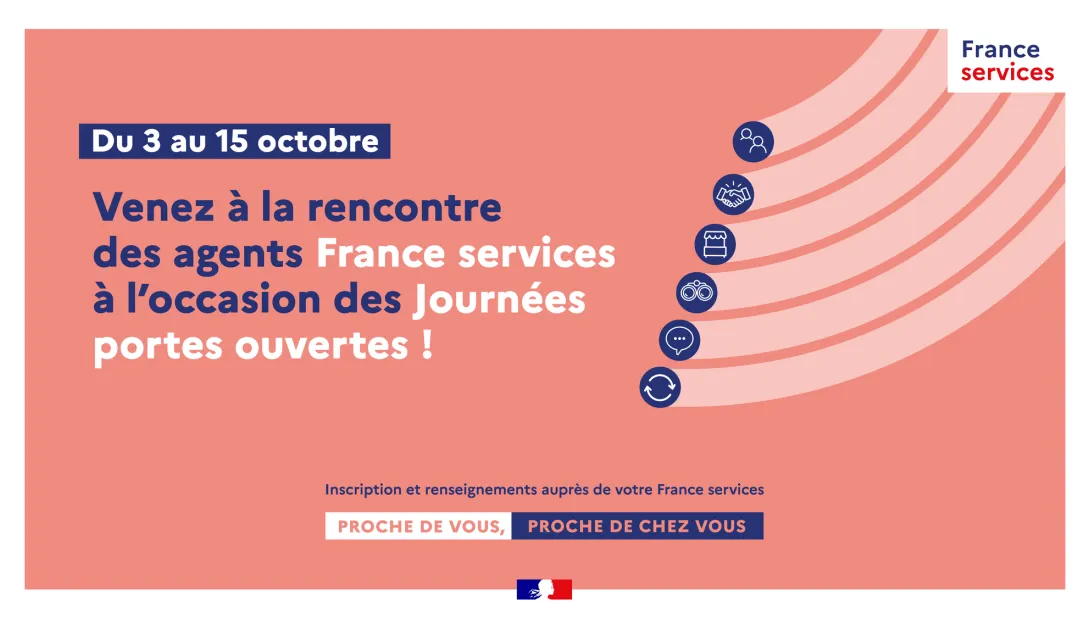 La 2e édition des journées portes ouvertes de France services se tiendra du 3 au 15 octobre 2022. Durant deux semaines, France services organise, partout en France, des animations pour accueillir le public et lui faire connaître son offre de service. À la clé, plus de 5 000 événements dans plus de 1 000 France services participantes. Une carte interactive permet de découvrir les animations près de chez soi.