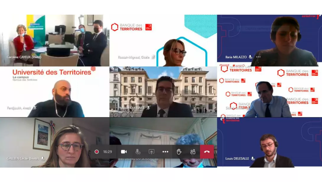Le 24 février dernier a eu lieu l’inauguration de l’Académie des territoires, qui a réuni une soixantaine de participants. Caroline Cayeux, présidente de l’ANCT, maire de Beauvais et présidente de Villes de France, a introduit la visioconférence, avec la participation de Gisèle Rossat-Mignod, directrice du réseau de la Banque des Territoires. Se sont ensuite succédés des échanges entre Johanna Rolland, maire de Nantes, et Pierre Veltz, président du conseil scientifique de l’Ihedate, puis entre Olivier Sichel, directeur général délégué de la Caisse des dépôts et directeur de la Banque des territoires, Yves Le Breton, directeur général de l’ANCT, et Philippe Guérinet, directeur de Sciences Po Executive Education.