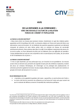 Aboutissement d’un cycle de huit mois de réflexions, leConseil national des villesa adopté un nouvel avis :« De la défiance à la confiance : vers une nouvelle culture de la relation entre les forces de l’ordre et la population ».