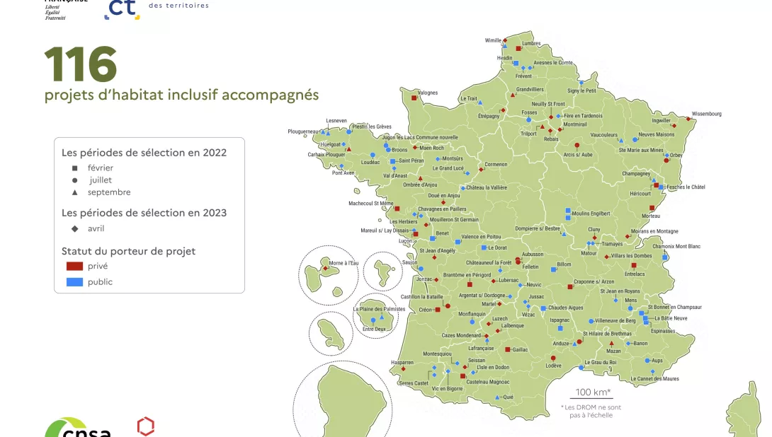 Dans le cadre du programme Petites villes de demain et de la démarche Bien vieillir, un AMI expérimental a été lancé en octobre 2021 pour stimuler le déploiement de l’habitat inclusif dans les communes bénéficiaires du programme. Un accompagnement en ingénierie est proposé aux lauréats par l’ANCT, la Banque des territoires ou la CNSA selon les besoins du projet. Un objectif d’accompagnement de 100 projets par an jusqu’en 2026 a été fixé par le gouvernement.