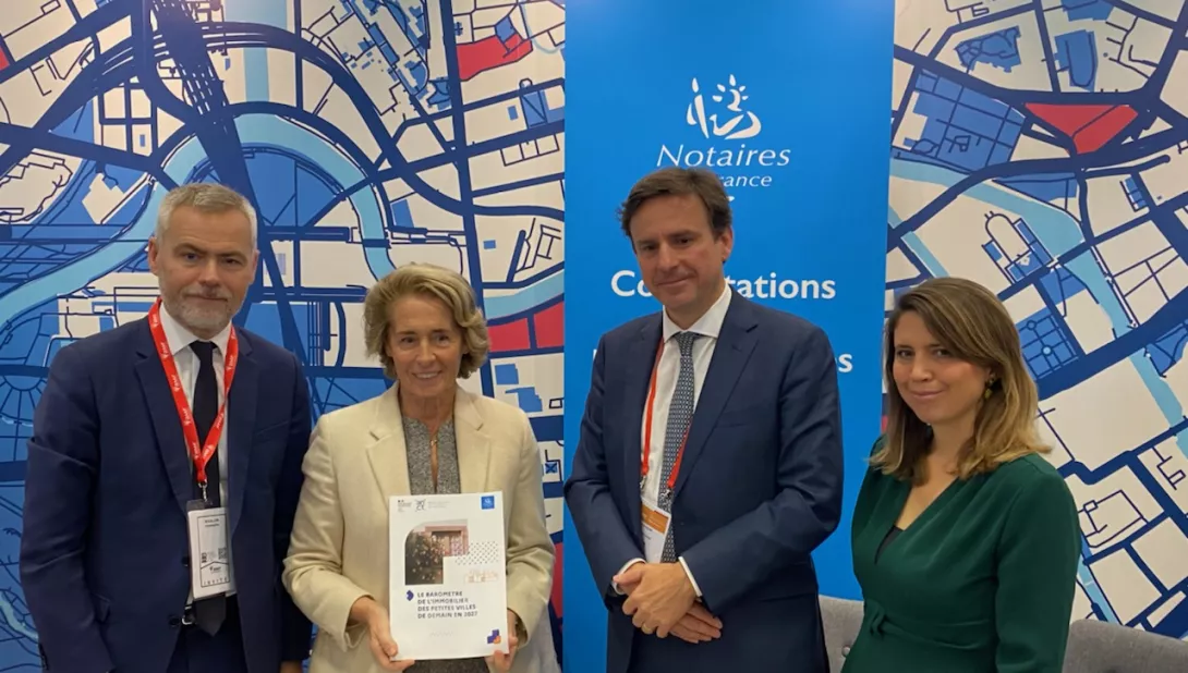 La Ministre déléguée en charge des Collectivités territoriales, Caroline Cayeux, l’Agence nationale de la cohésion des territoires, et le Conseil supérieur du Notariat ont présenté le 1er Baromètre de l’immobilier des Petites villes de demain, en présence de Christophe Bouillon, président de l’Association des petites villes de France, au Salon des maires et des collectivités locales le jeudi 24 novembre 2022.