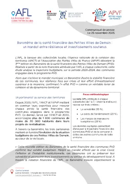 Issu d'un partenariat entre l'ANCT, l'Agence France Local et l'Association des Petites Villes de France, le baromètre propose un suivi de la note financière des communes PVD par rapport à l'ensemble des communes françaises ayant entre 500 et 20 000 habitants sur la période 2020 à 2024.