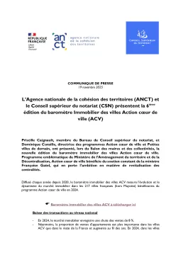 L’ANCT et le Conseil supérieur du notariat présentent la 6ème édition du baromètre Immobilier des villes Action cœur de ville.