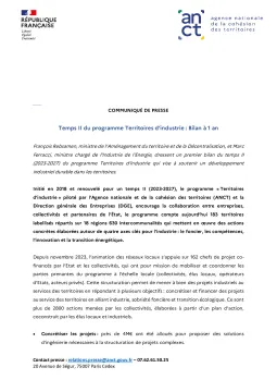 [Communiqué de presse] Bilan 1 an - Temps II - Territoires d'industrie