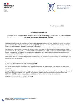 [Communiqué de presse] La Commission permanente du Conseil National de la Montagne s'est réunie en présence de sa nouvelle présidente, Marie-Noëlle Battistel