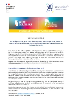 [Communiqué de presse] Un outil gratuit au service du développement économique local : Deveco remporte le Prix de l’innovation territoriale 2024 au Salon des Maires et des Collectivités Locales
