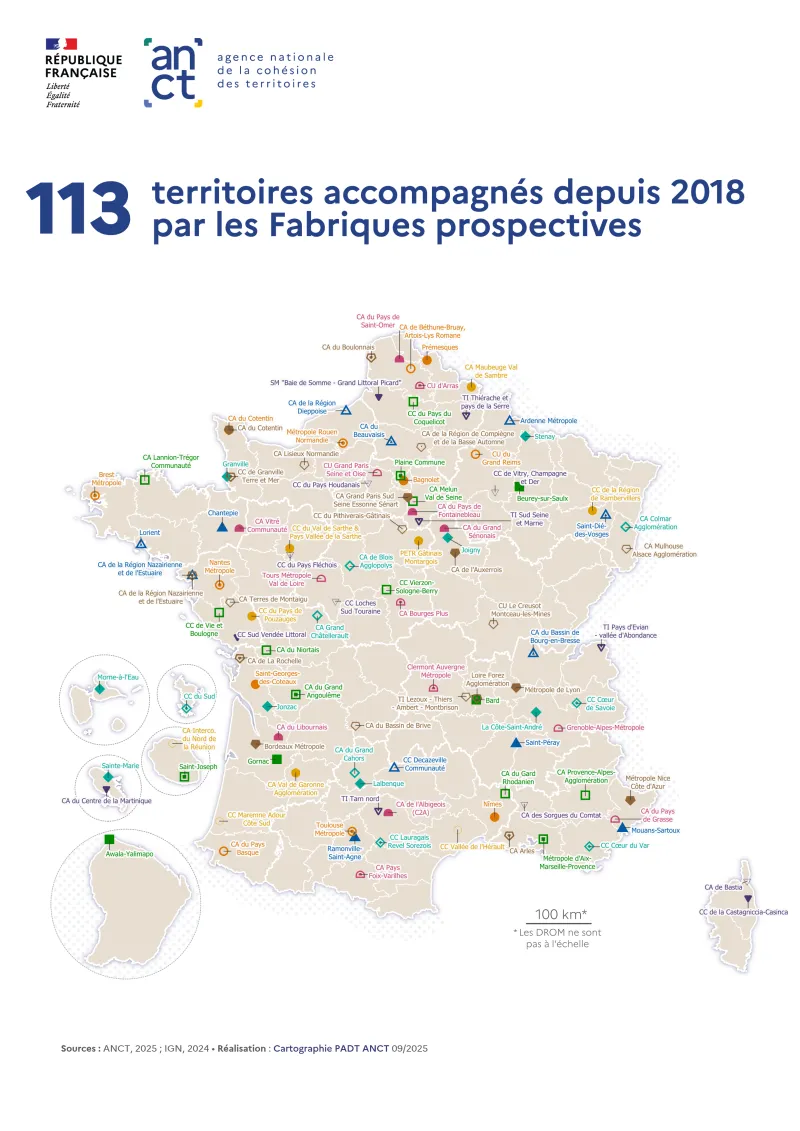 Offres d'ingénierie de l'ANCT, les Fabriques prospectives (FP) accompagnent des groupes de 4 à 8 territoires dans la co-construction d'une vision et d'un programme d'actions afin de s’adapter aux transitions écologique, démographique et économique.