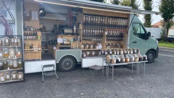L'épicerie itinérante sillonne les communes rurales de l’Aube à bord d’une camionnette aménagée, un élément clé du projet. Elle permet de transporter les produits en vrac tout en offrant un service à la fois mobile et pratique, sans avoir besoin de chambre froide.