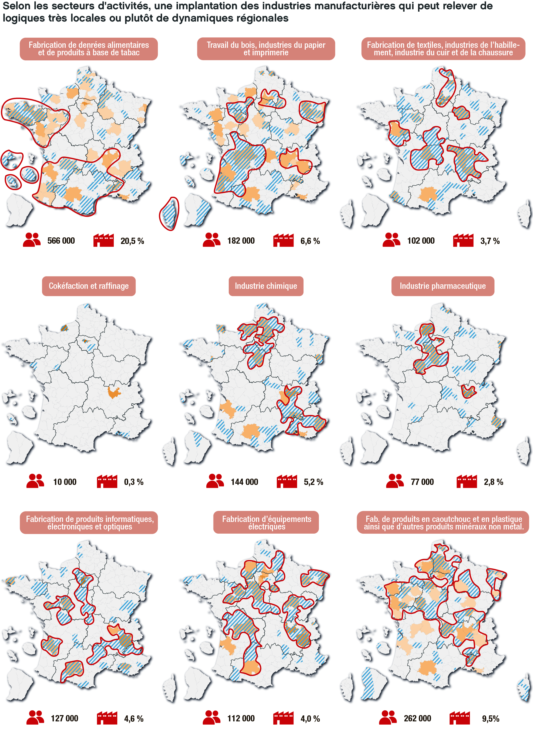 Source: (1/2) Selon les secteurs d'activités, une implantation des industries manufacturières qui peut relever de logiques très locales ou plutôt de dynamiques régionales