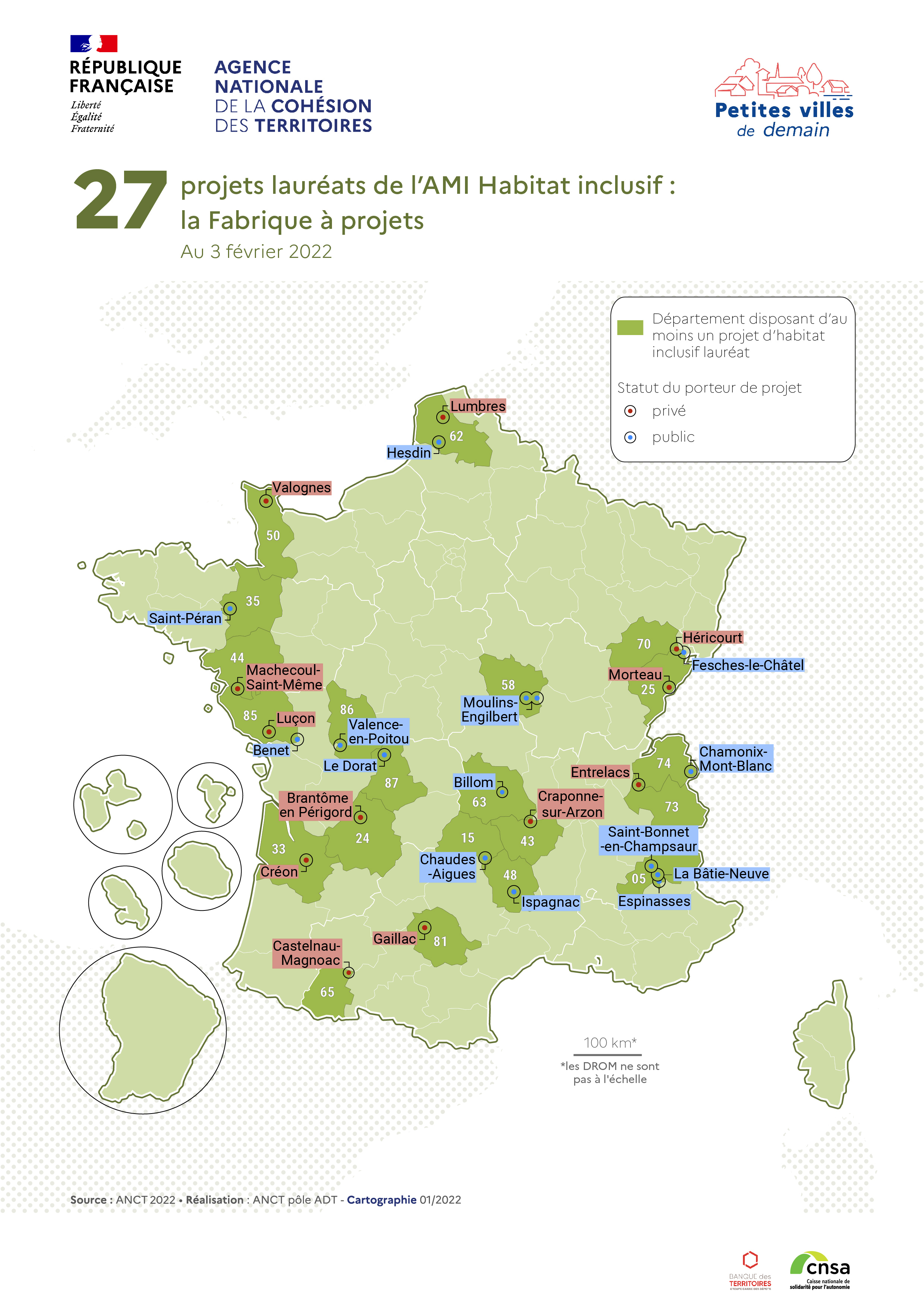 Type: 27 projets lauréats de l'AMI Habitat inclusif : la Fabrique à projets (format A4)