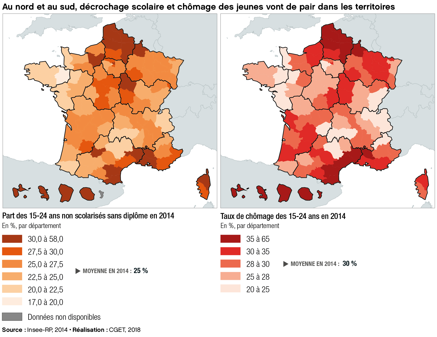 Au nord et au sud, décrochage scolaire et chômage des eunes vont de pair dans les territoires