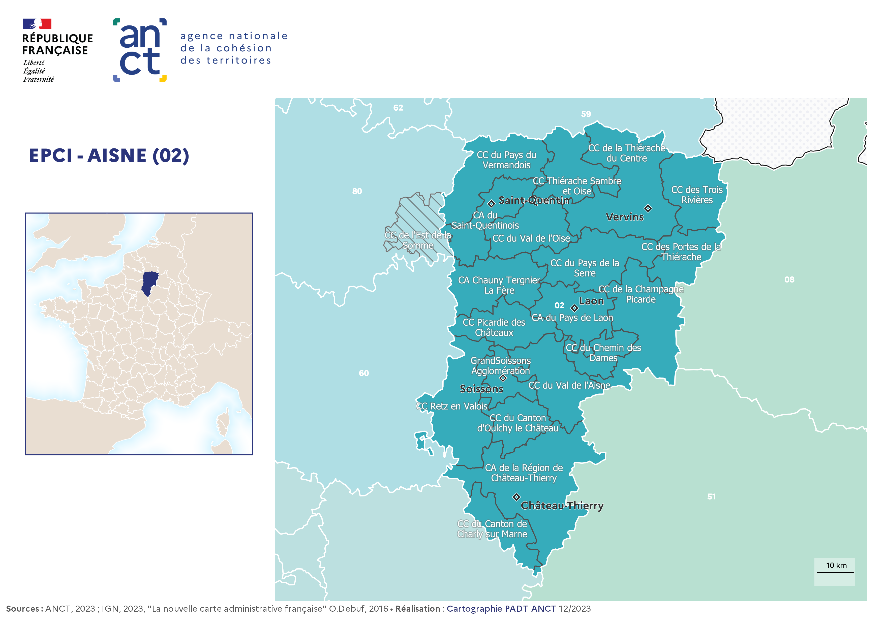 Carte départementale des EPCI en 2023 : Aisne