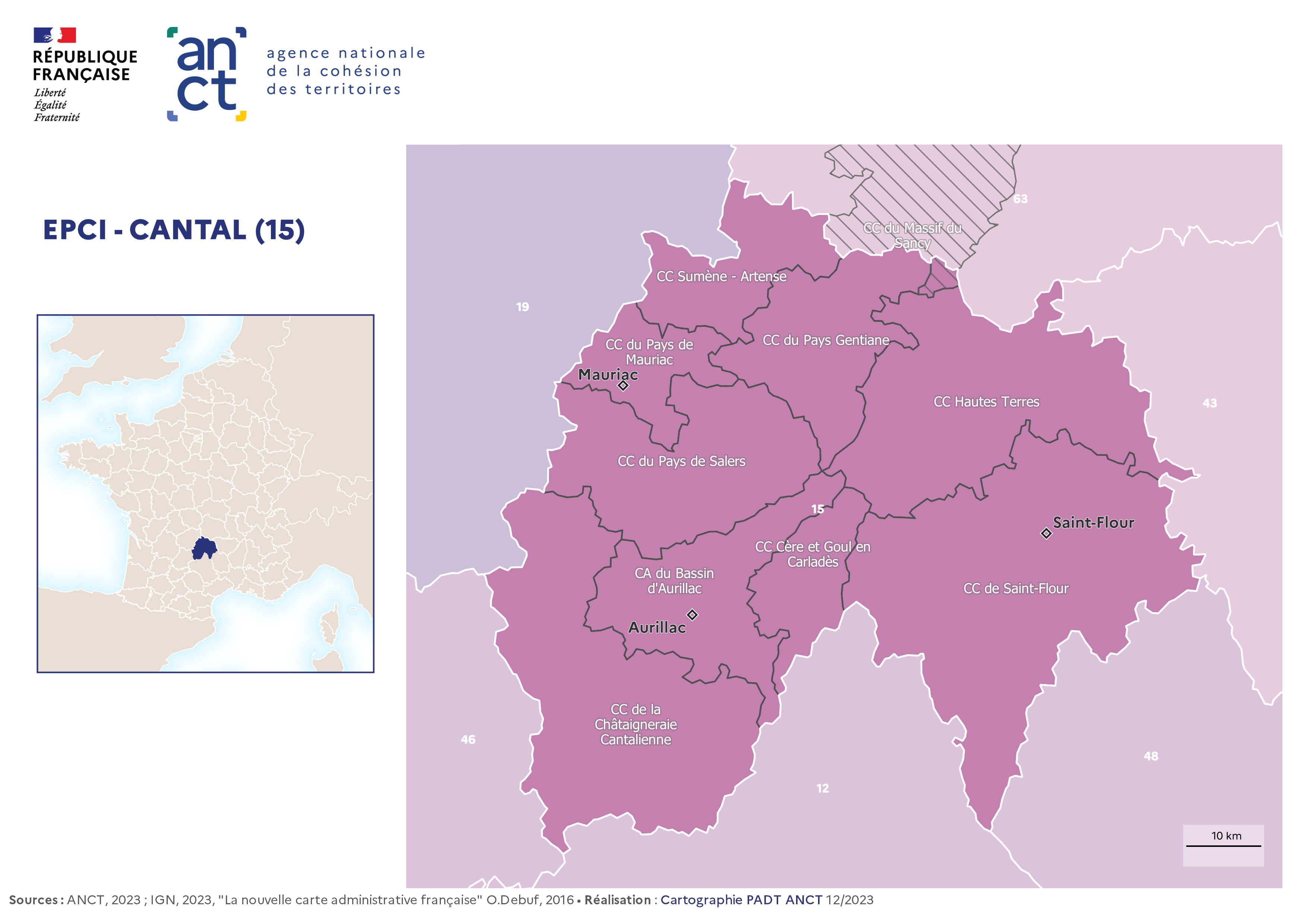 Carte départementale des EPCI en 2023 : Cantal