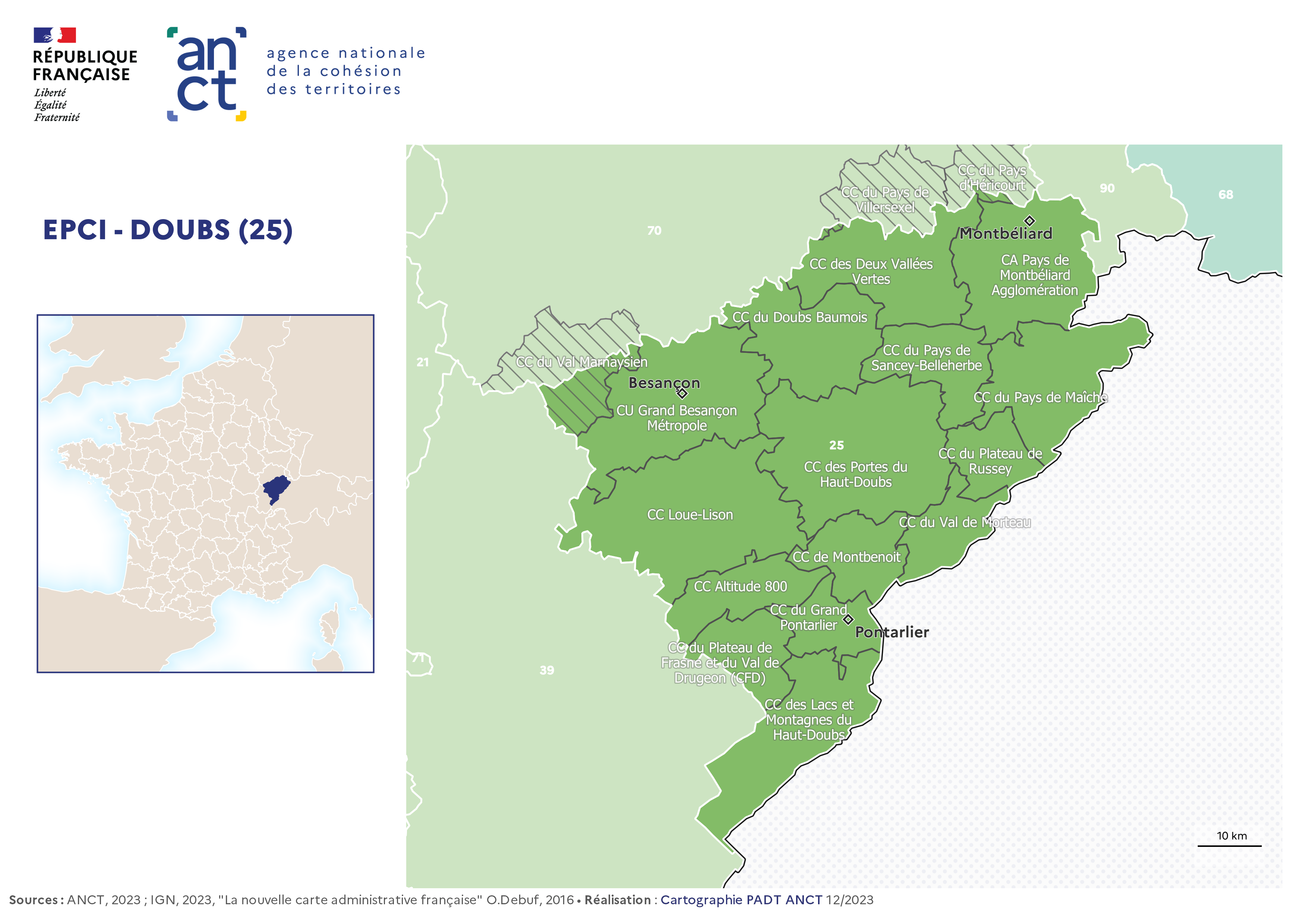 Carte départementale des EPCI en 2023 : Doubs