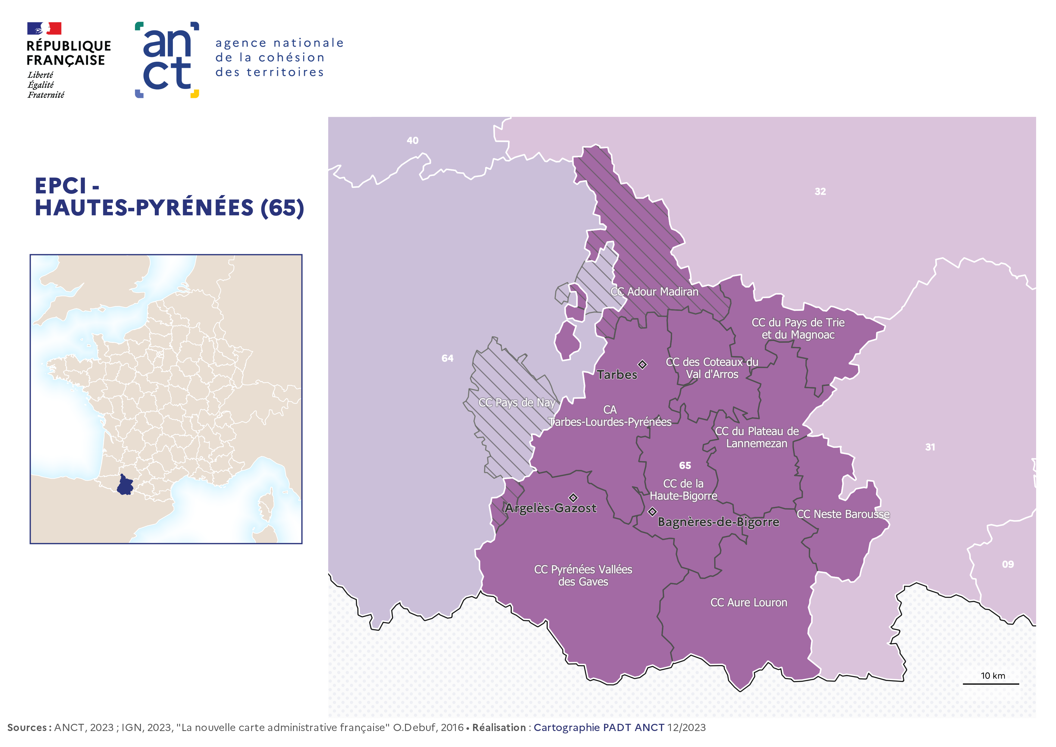 Carte départementale des EPCI en 2023 : Hautes-Pyrénées