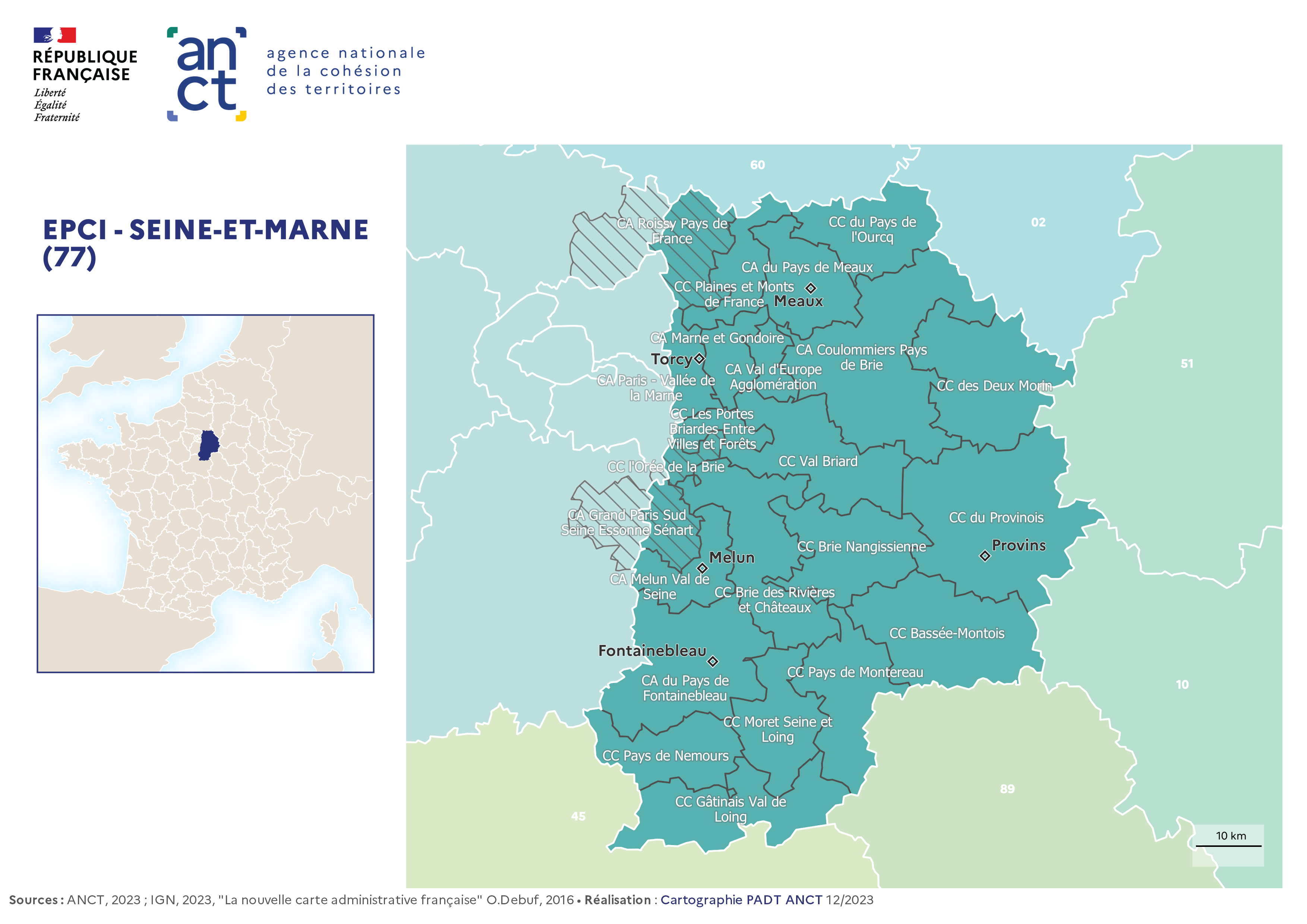 Carte départementale des EPCI en 2023 : Seine-et-Marne