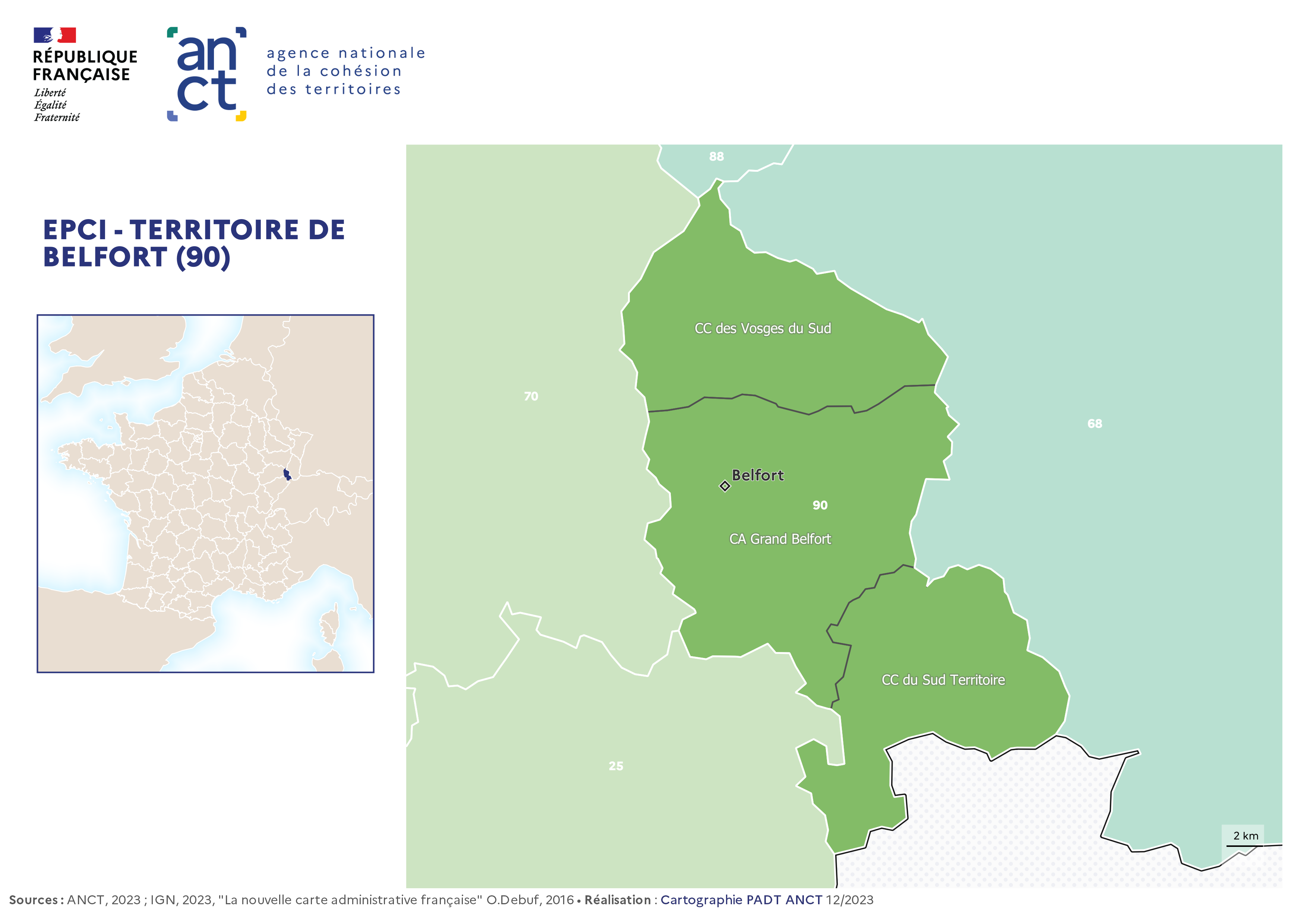 Carte départementale des EPCI en 2023 : Territoire de Belfort