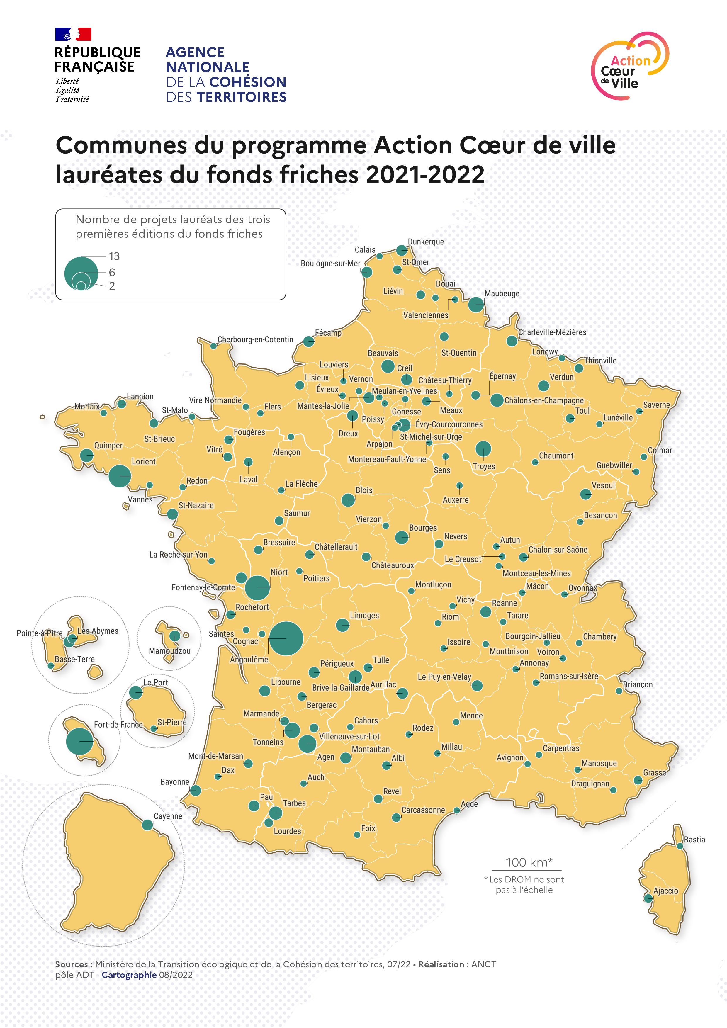 Type: Communes du programme Action cœur de ville lauréates du fonds friches 2021-2022