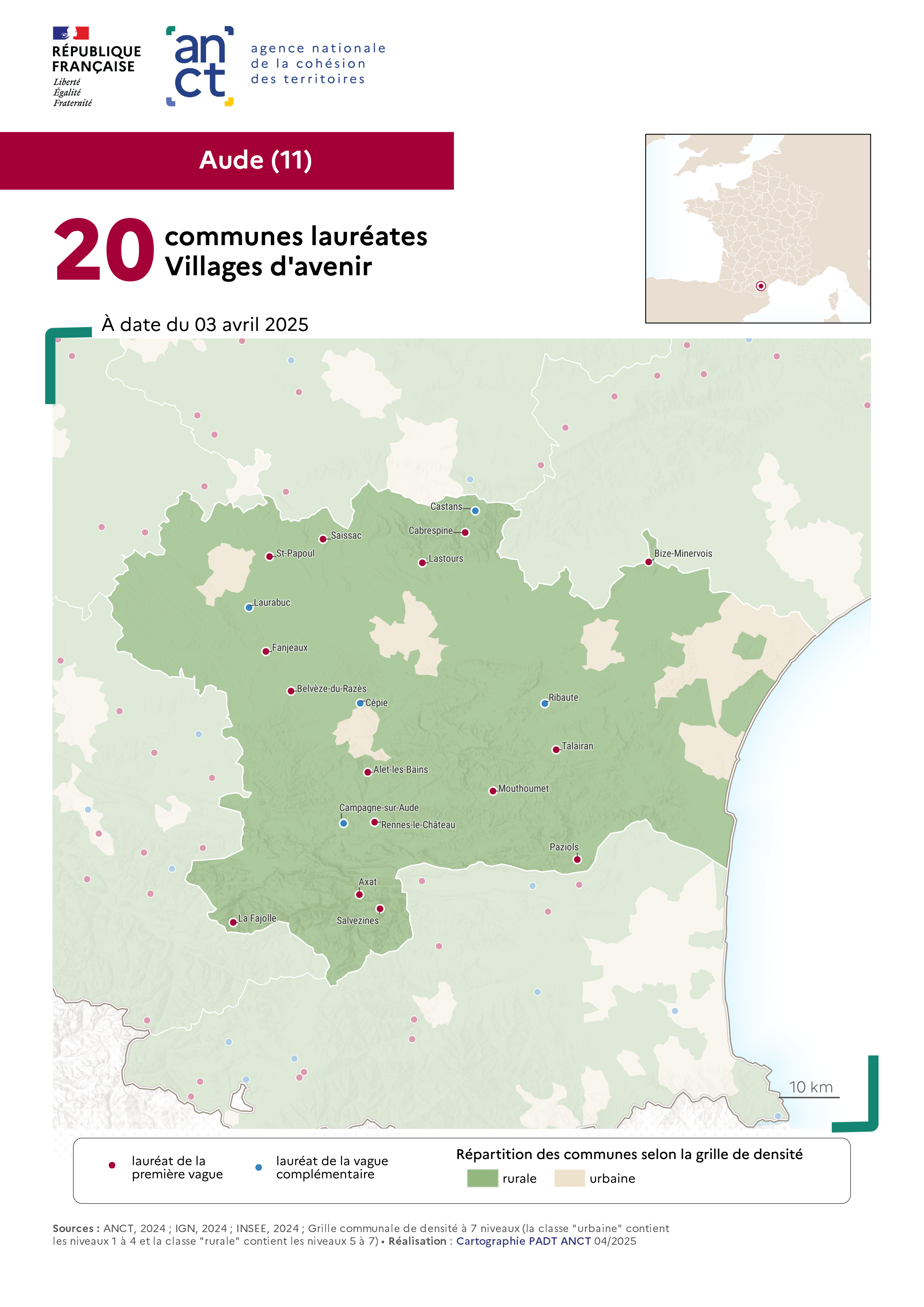 Source: Communes labellisées Villages d'avenir : Aude