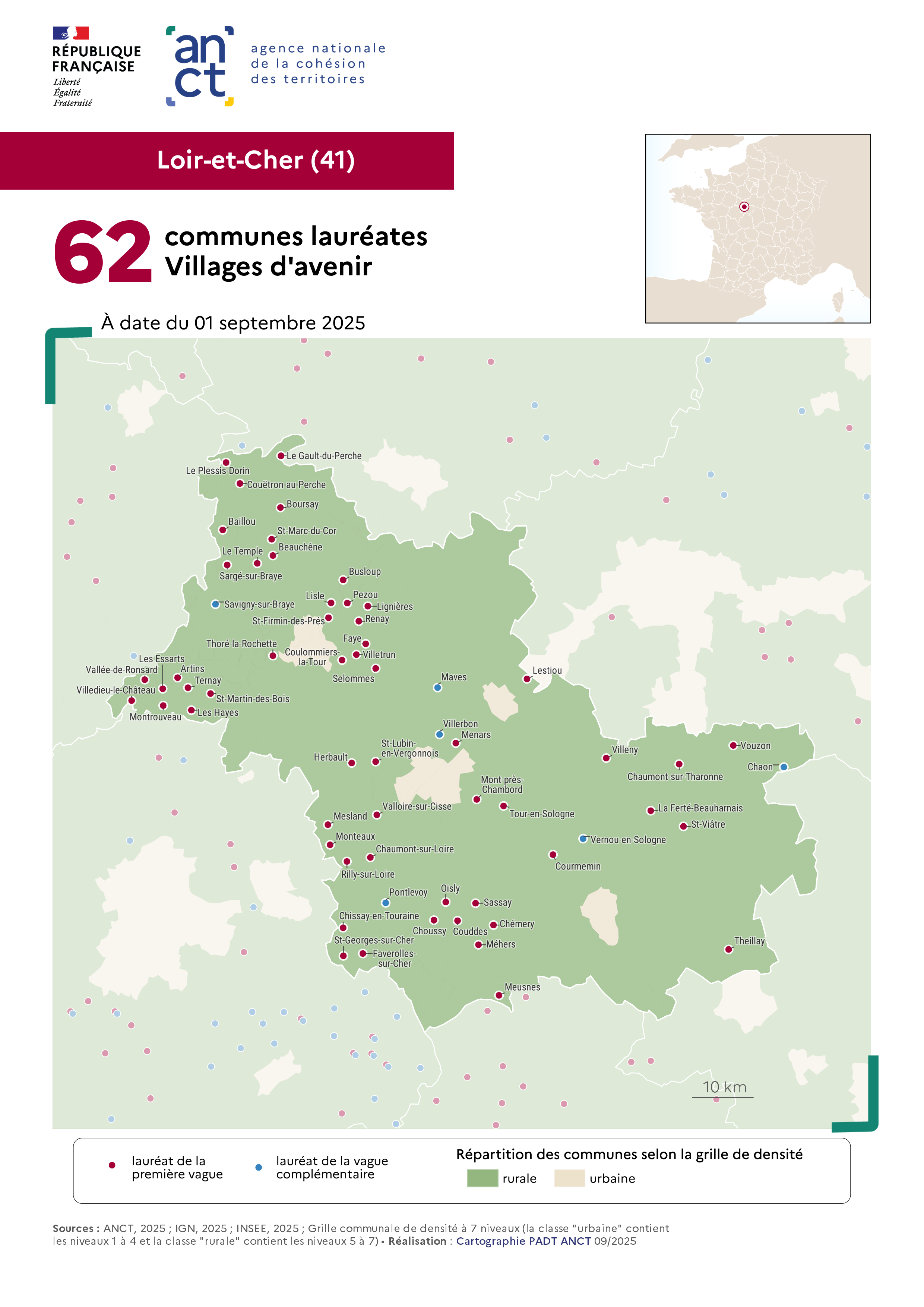 Communes labellisées Villages d'avenir : Loir-et-Cher