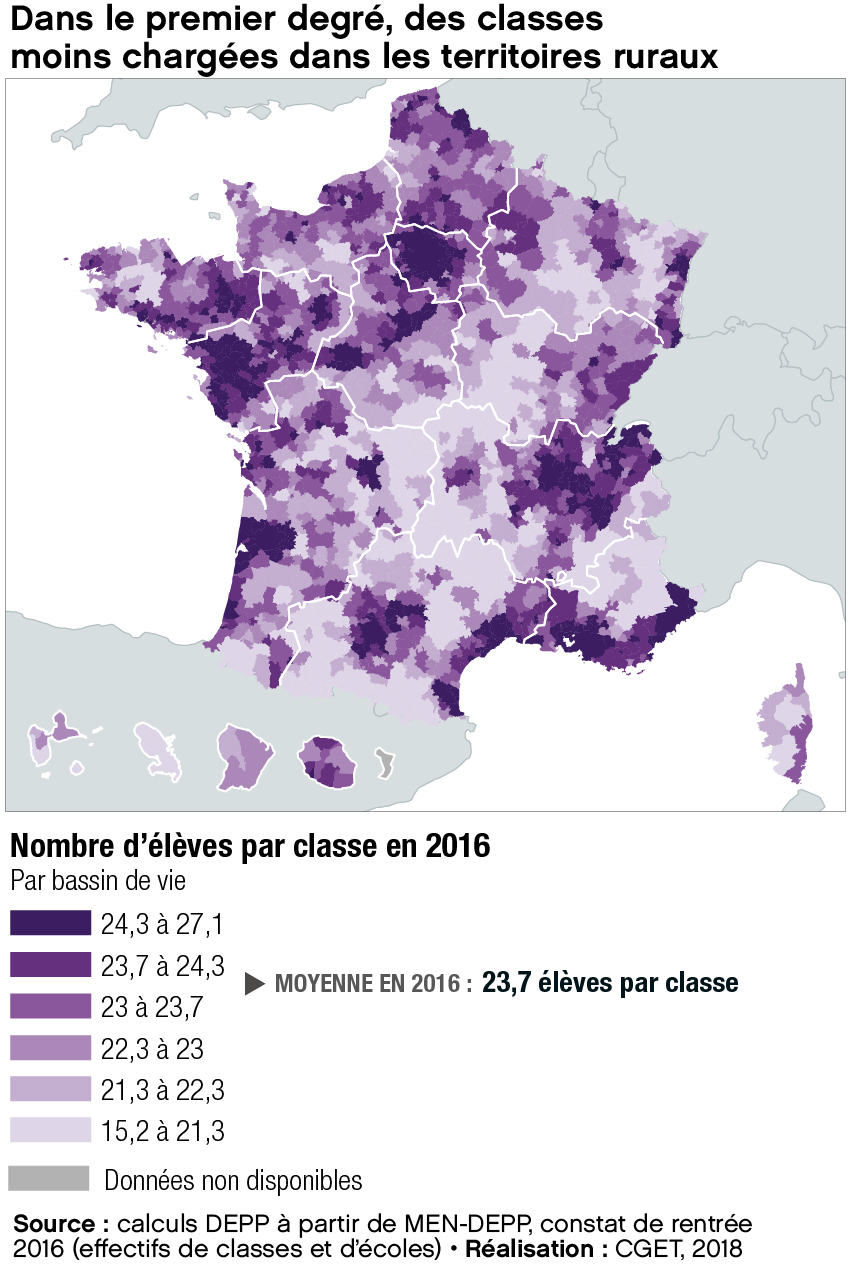 Source: Dans le premier degré, des classes moins chargées dans les territoires ruraux