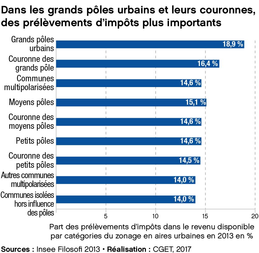 Dans les grands pôles urbains et leurs couronnes, des prélèvements d'impôts plus importants