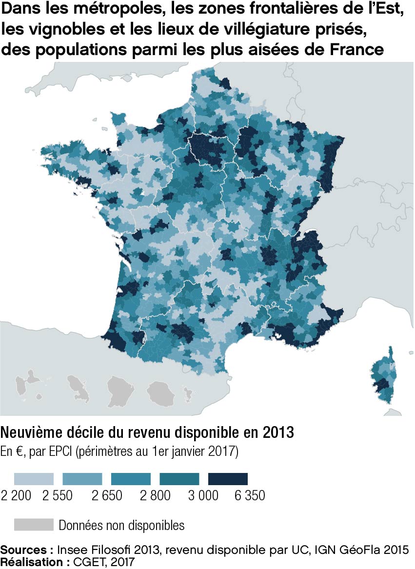 Source: Dans les métropoles, les zones frontalières de l'Est, les vignobles et les lieux de villégiature prisés, des populations parmi les plus aisées de France