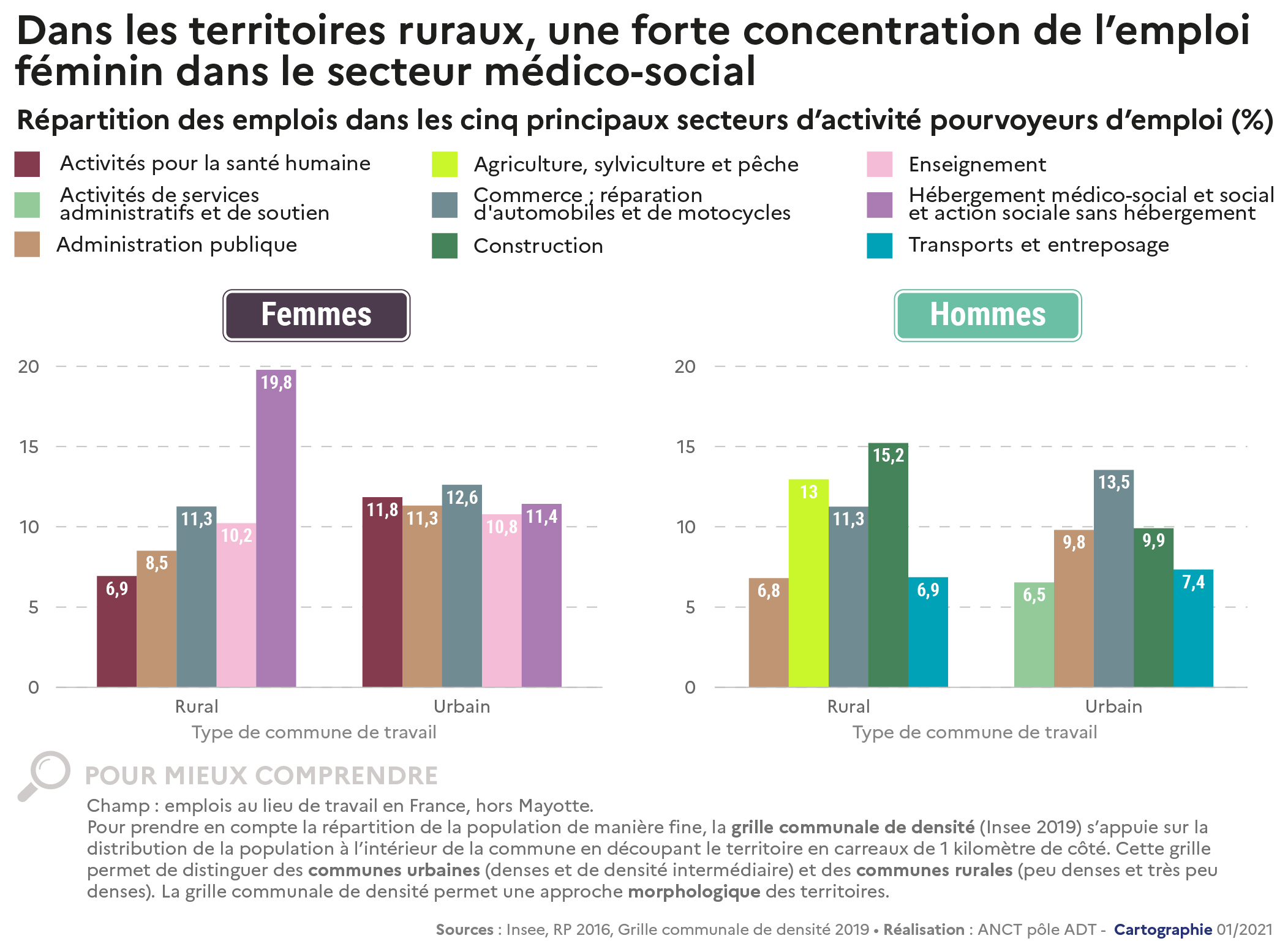 Source: Dans les territoires ruraux, une forte concentration de l'emploi féminin dans le secteur médico-social