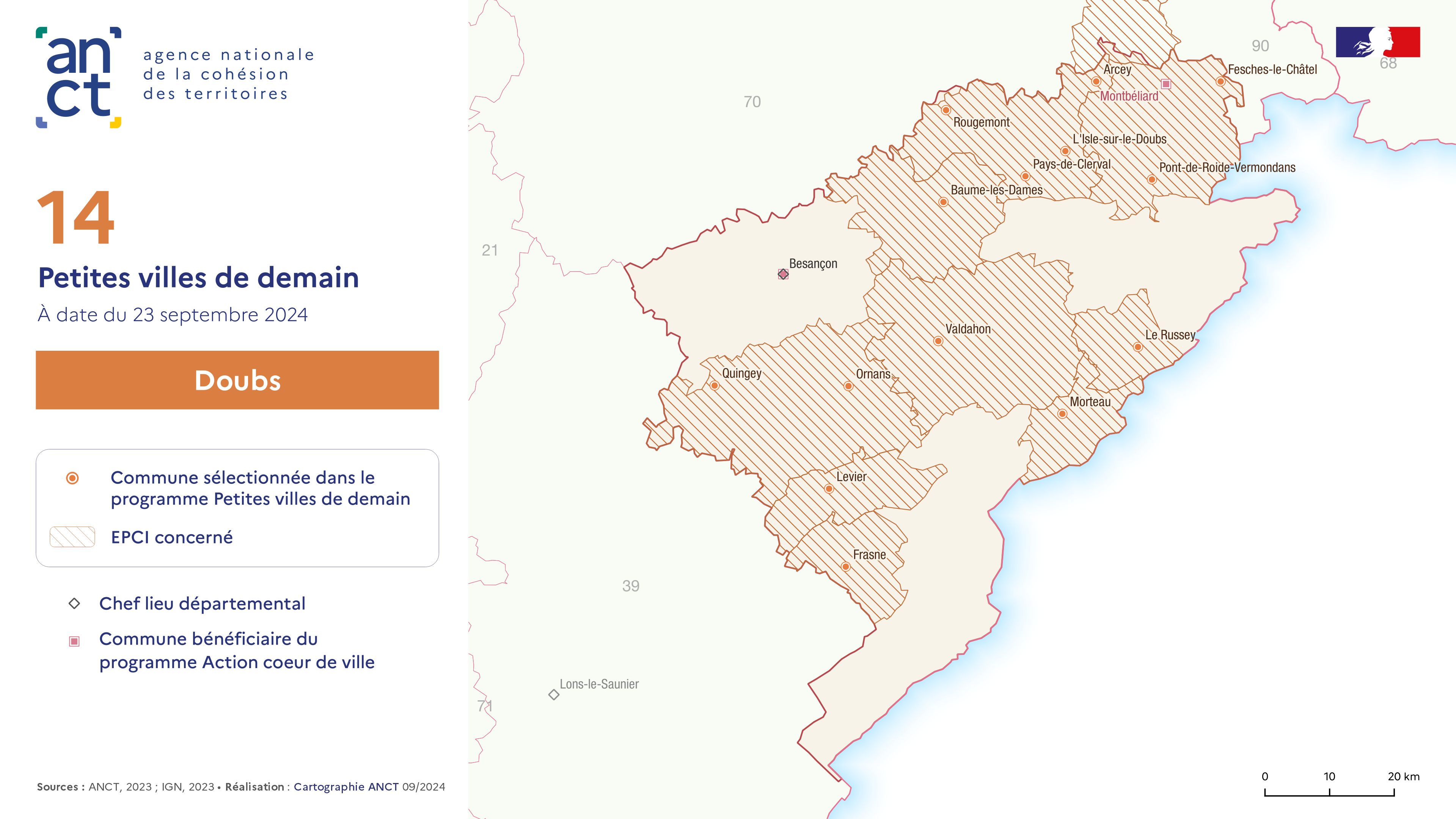 Communes retenues dans le dispositif Petites villes de demain. Petites villes de demain vise à améliorer les conditions de vie des habitants des petites communes et des territoires alentour, en accompagnant les collectivités dans des trajectoires dynamiques et respectueuses de l'environnement. Le programme a pour objectif de donner aux élus des villes et leurs intercommunalités de moins de 20 000 habitants exerçant des fonctions de centralités les moyens de concrétiser leurs projets de territoires.