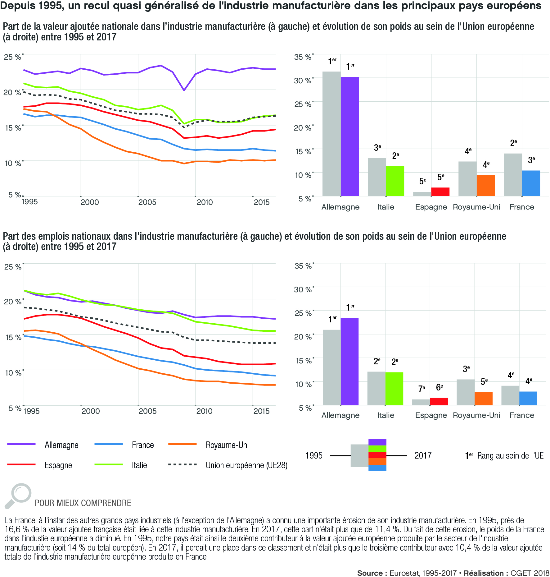 Type: Depuis 1995, un recul quasi généralisé de l'industrie manufacturière dans les principaux pays européens