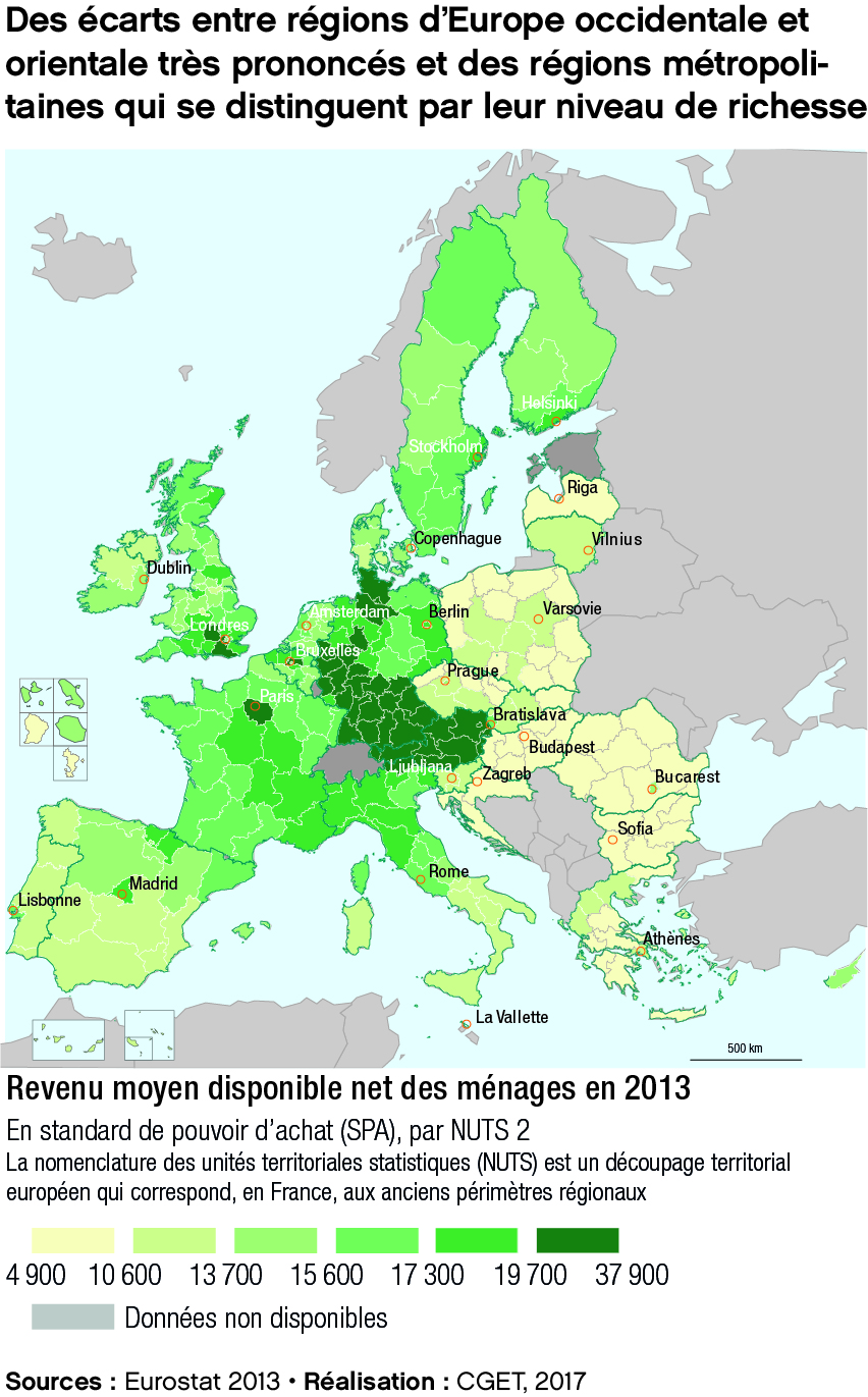 Des écarts entre régions d'Europe occidentale et orientale très prononcés et des régions métropolitaines qui se distinguent par leur niveau de richesse