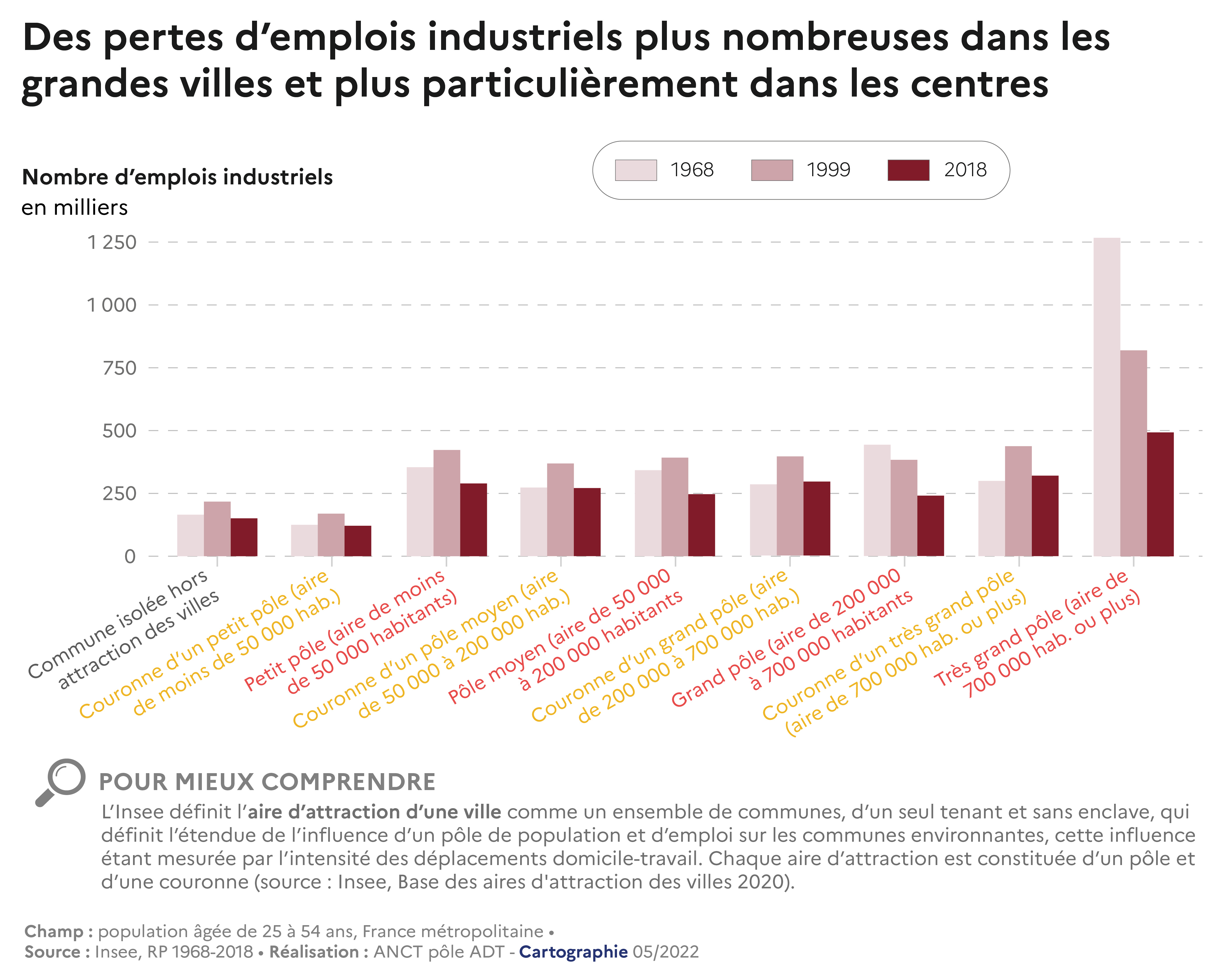 Des pertes d'emplois industriels plus nombreuses dans les grandes villes et plus particulièrement dans les centres