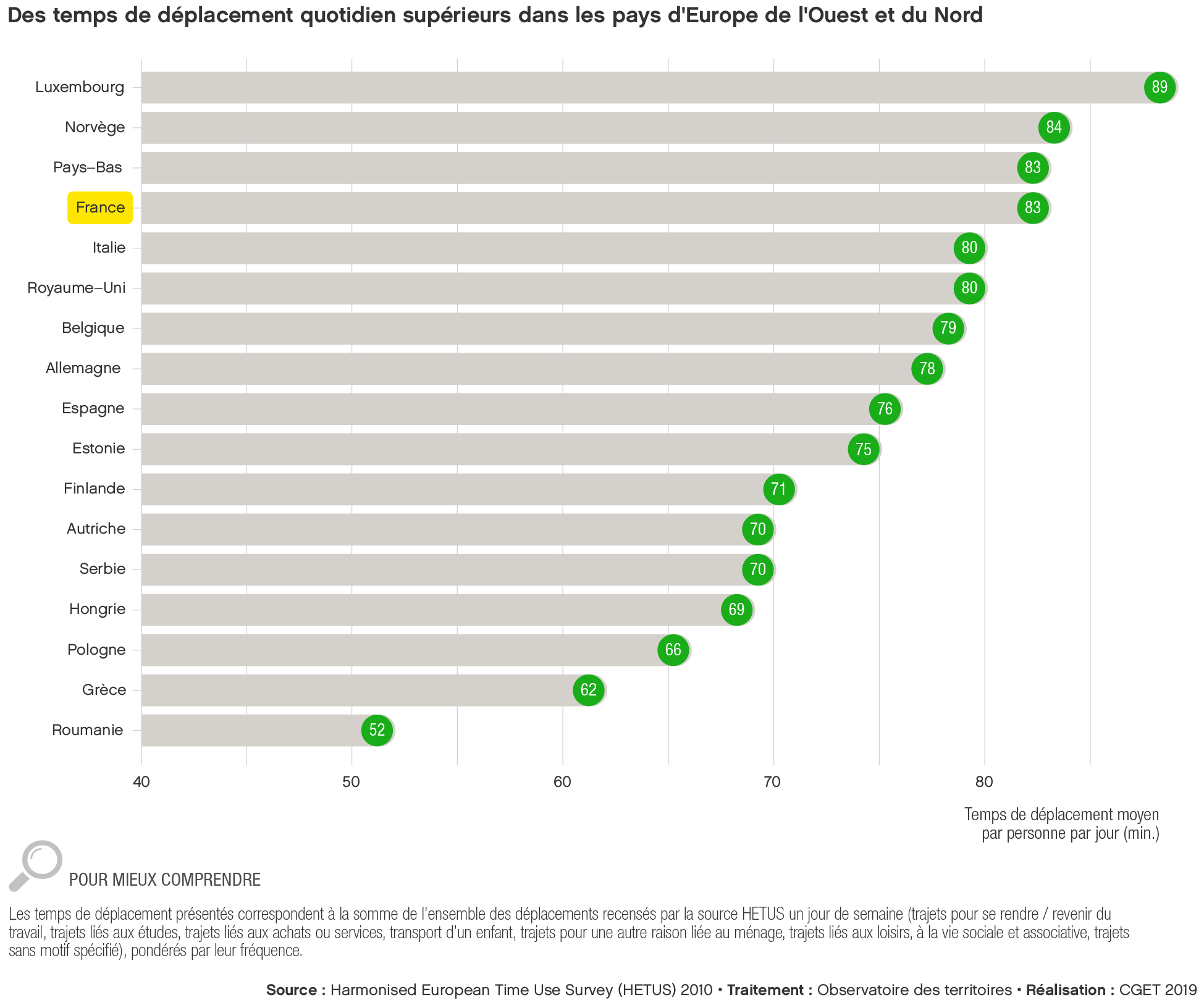 Échelle: Des temps de déplacement quodidien supérieurs dans les pays d'Europe de l'Ouest et du Nord