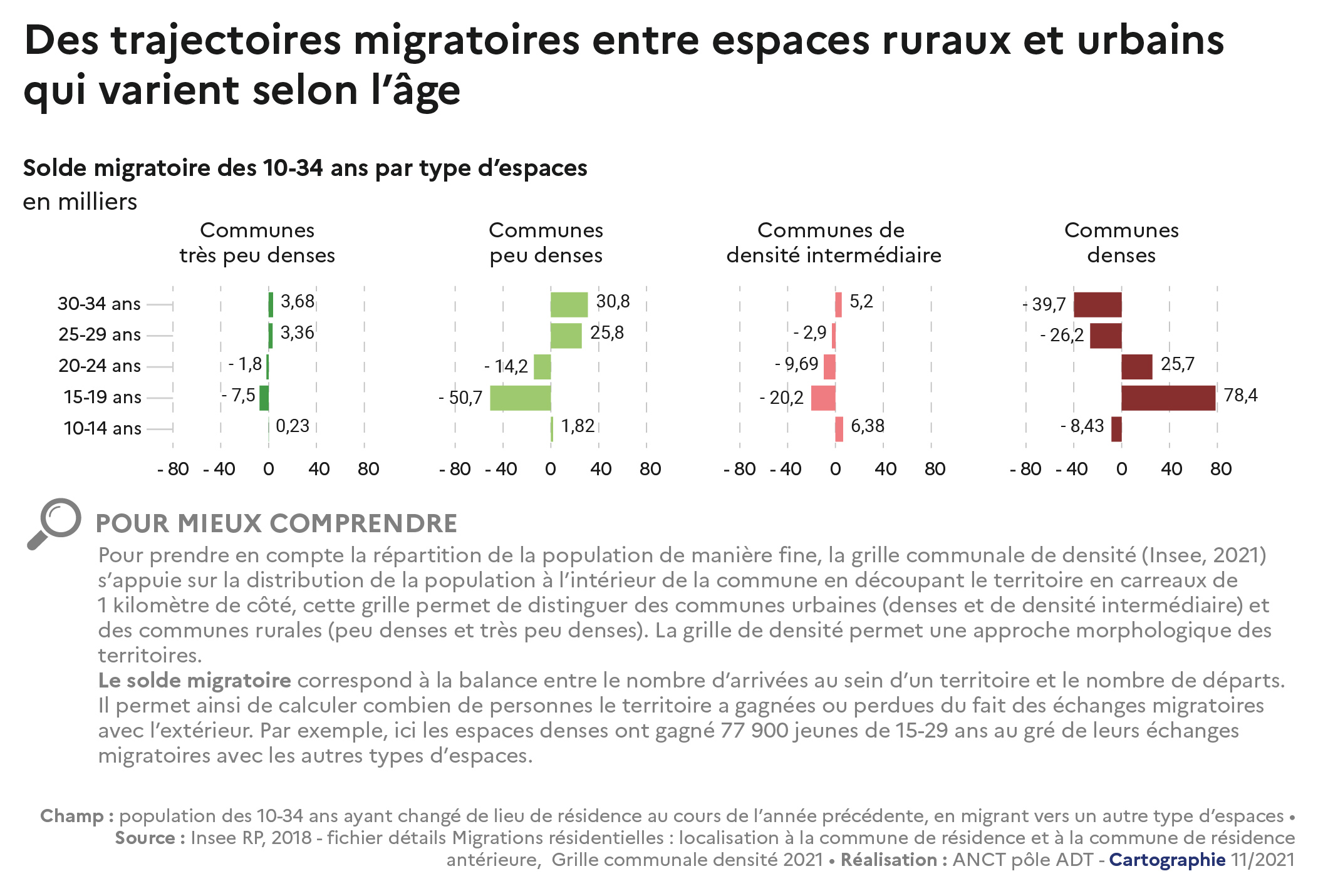 Solde migratoire des 10-34 ans par type d'espaces, en milliers