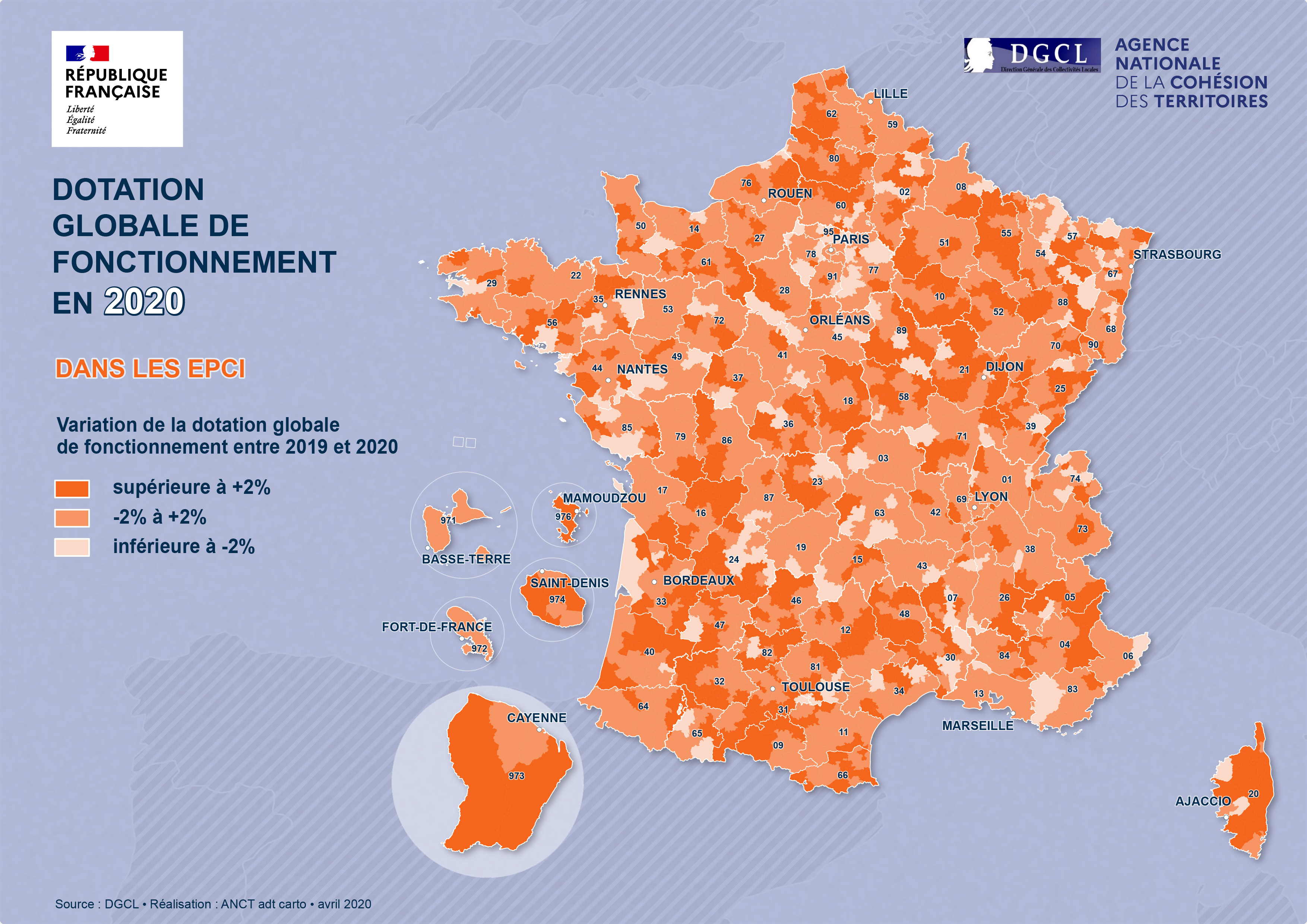 Variation de la DGF entre 2019 et 2020 dans les intercommunalités