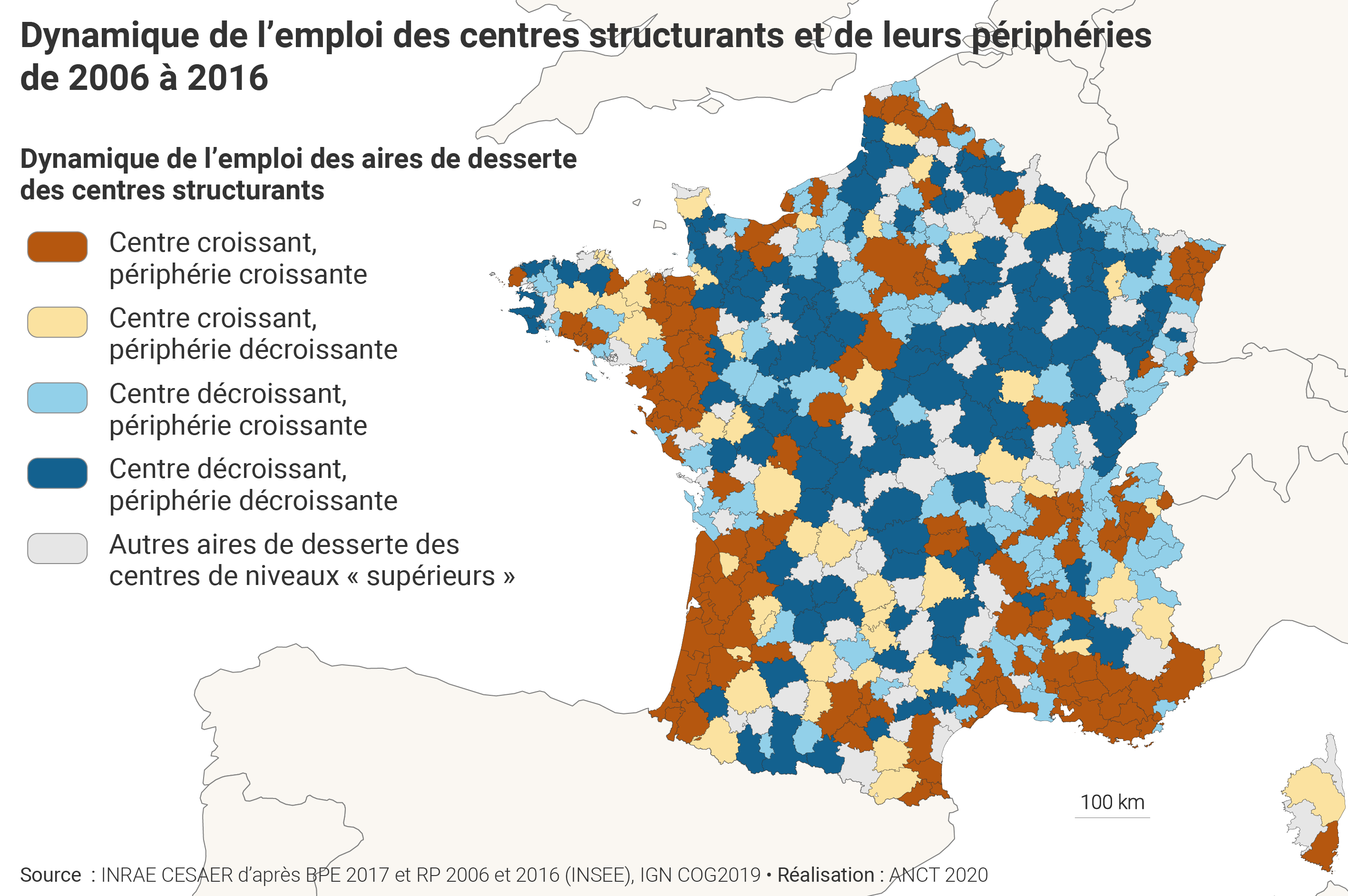 Dynamique de l'emploi des centres structurants et de leurs périphéries de 2006 à 2016