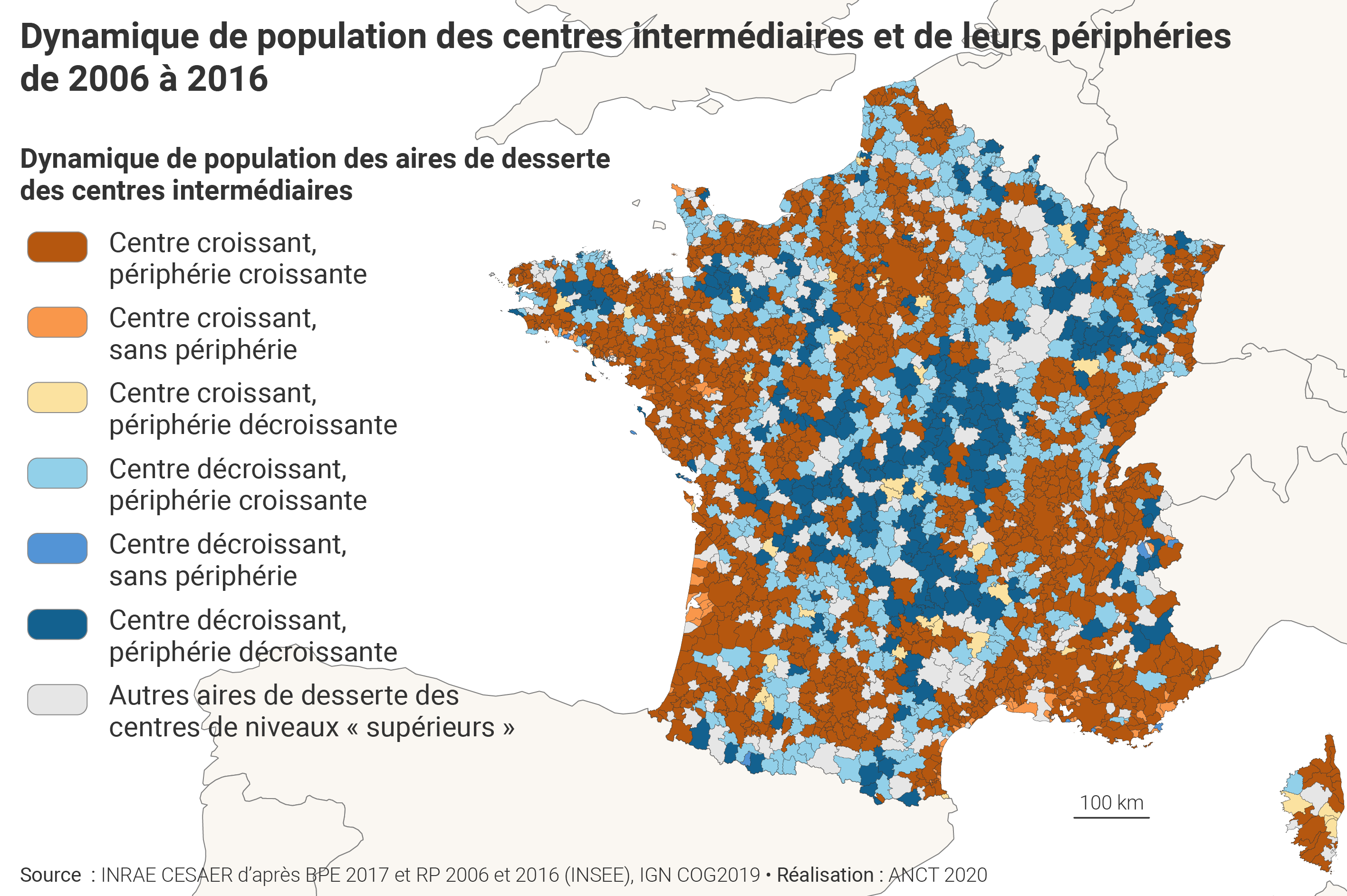 Dynamique de population des centres intermédiaires et de leurs périphéries de 2006 à 2016