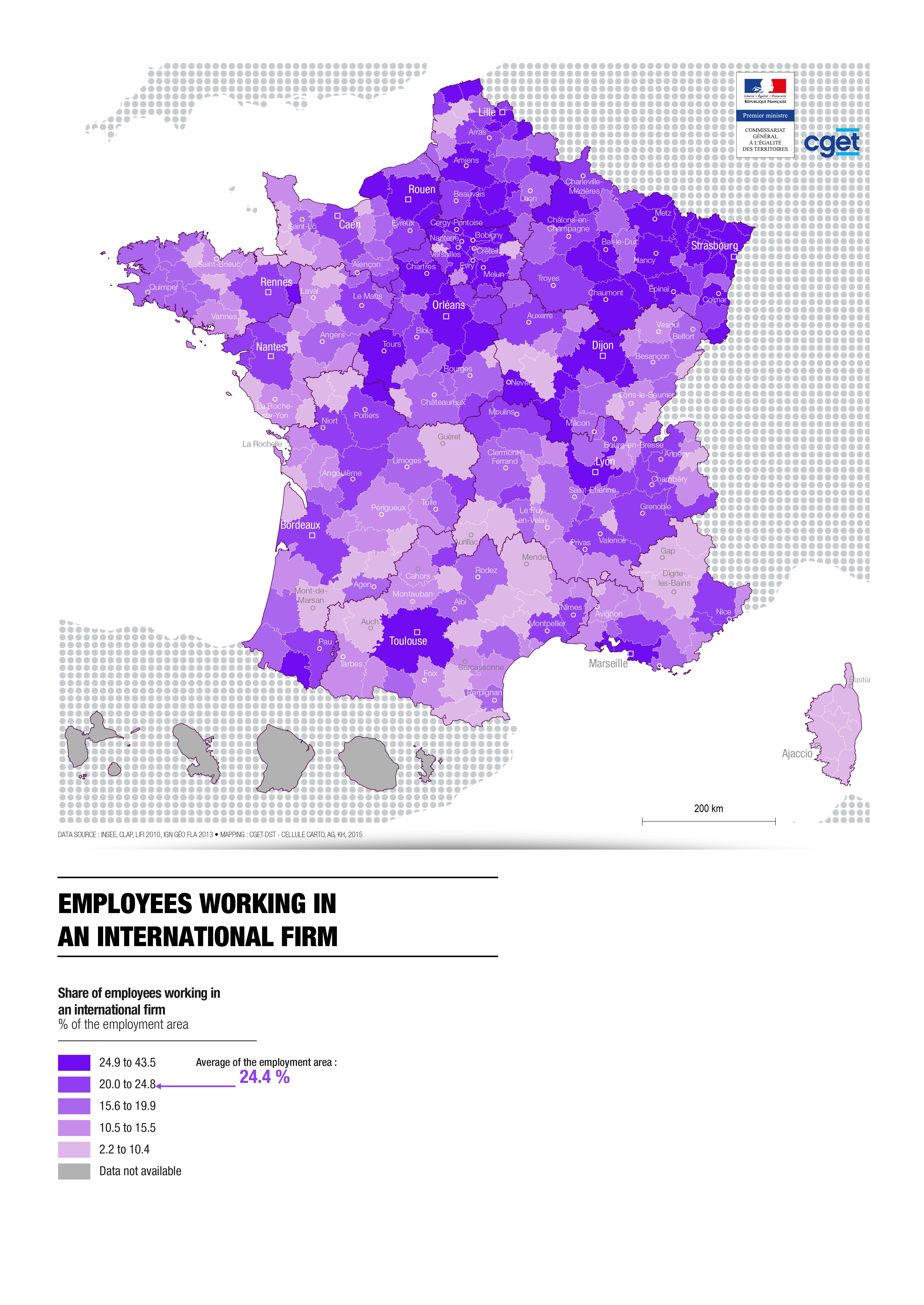 > On average, 24.4% of employees work in an international group in metropolitan France in 2015.