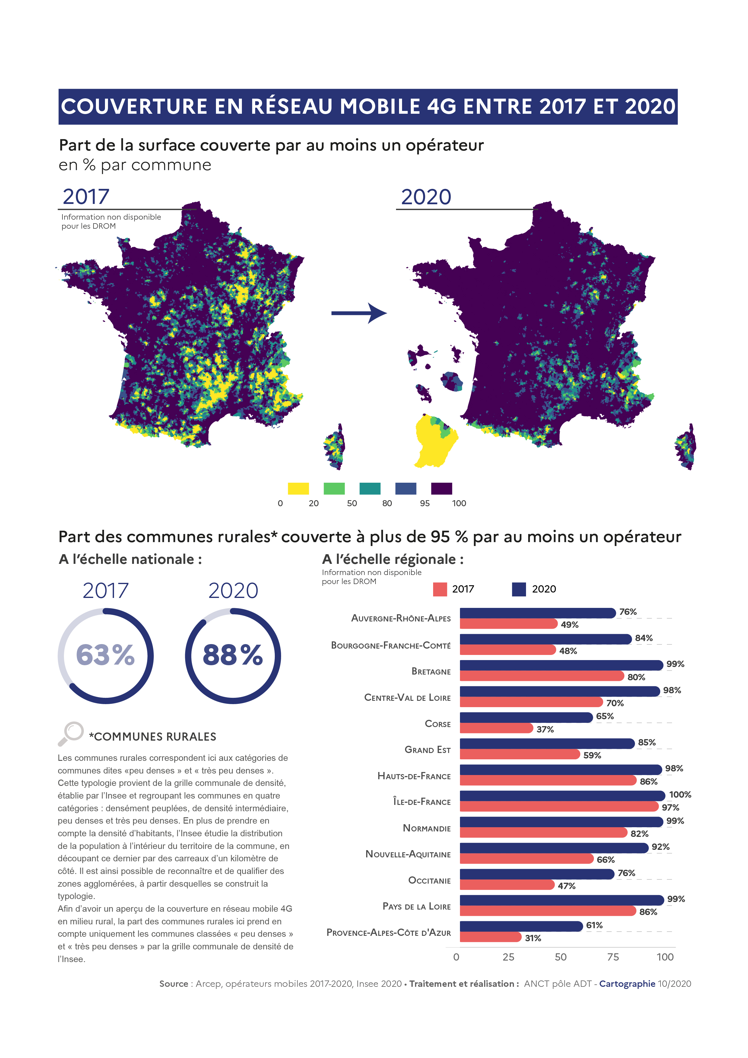 Source: Evolution de la couverture en réseau mobile 4G dans les communes rurales entre 2017 et 2020