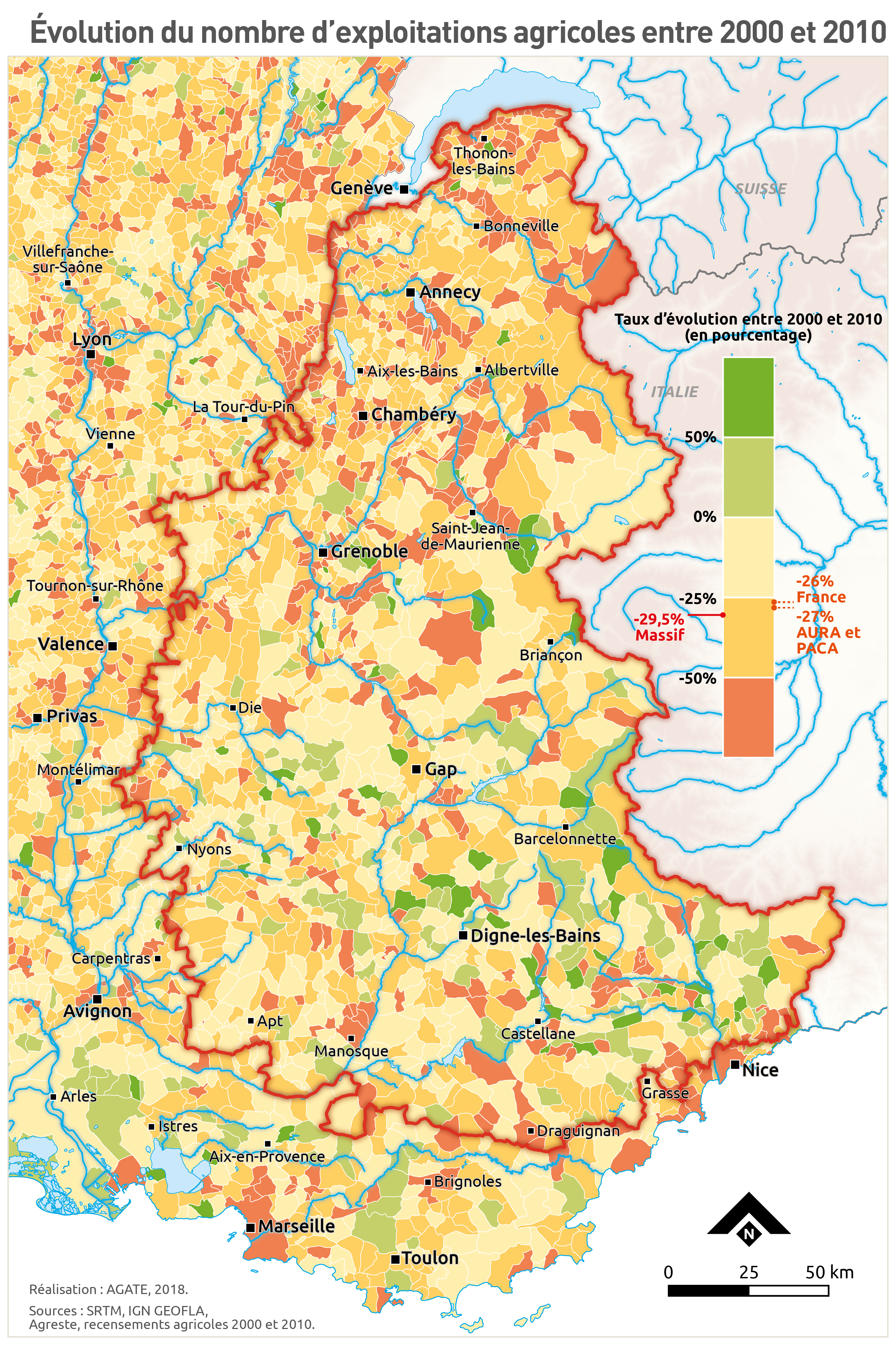 Source: Évolution du nombre d'exploitations agricoles entre 2000 et 2010