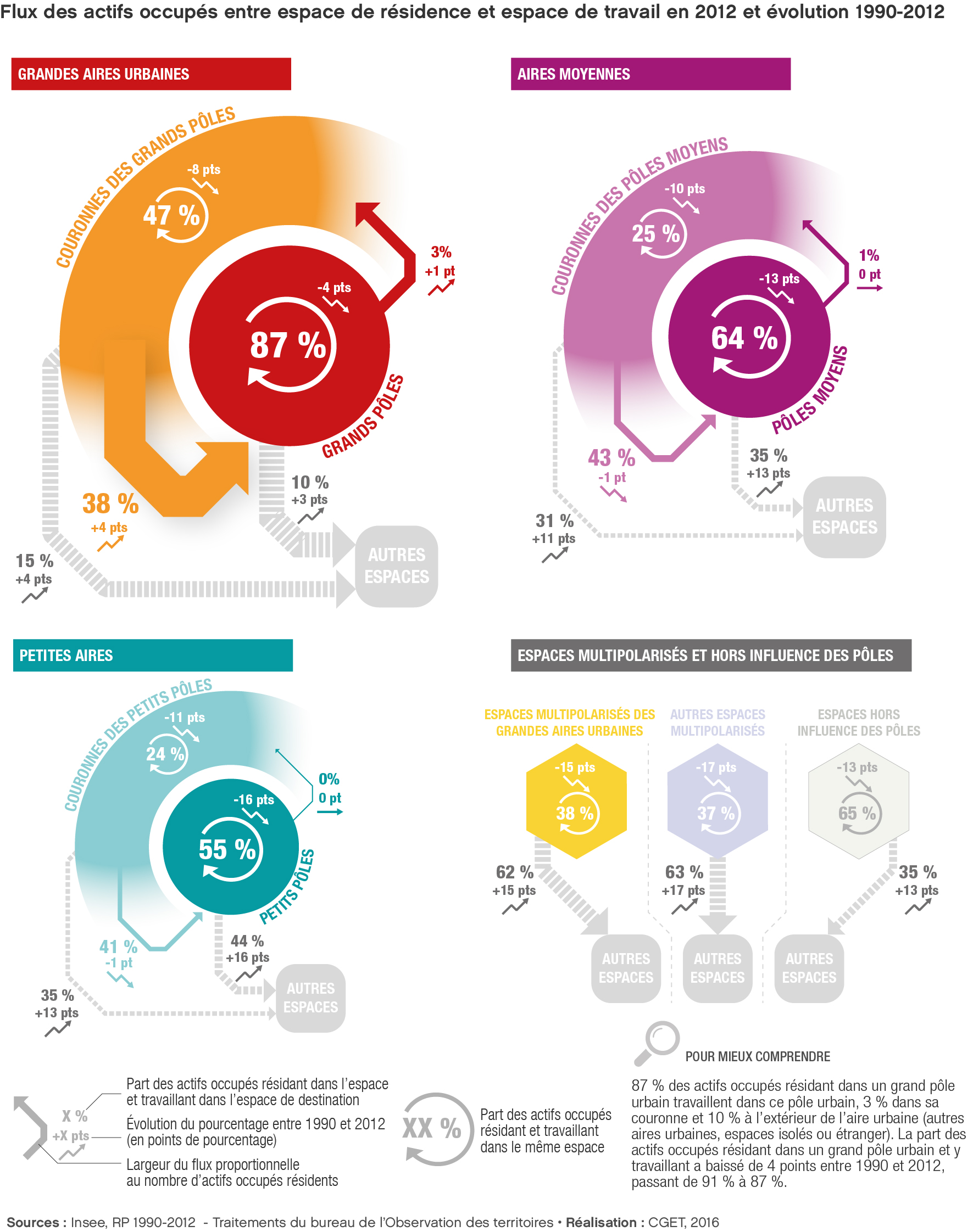 Source: Flux des actifs occupés entre espace de résidence et espace de travail en 2012 et évolution 1990-2012