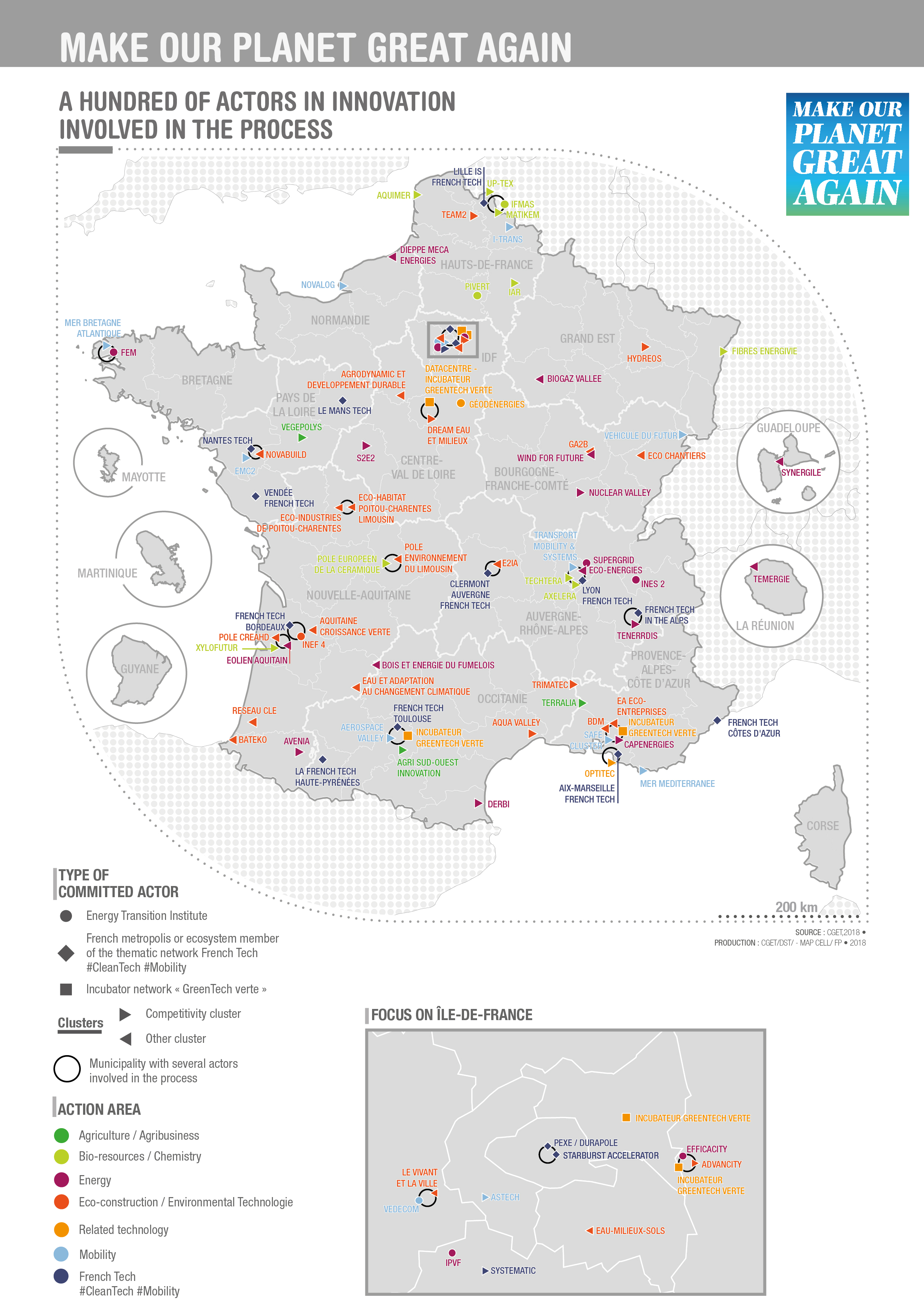 The actors involved in the "Make our Plant Great Again" approach are of different types: It can be an energy transition institute, a metropolis or a member of the French Tech network, a GreeenTech incubator or clusters