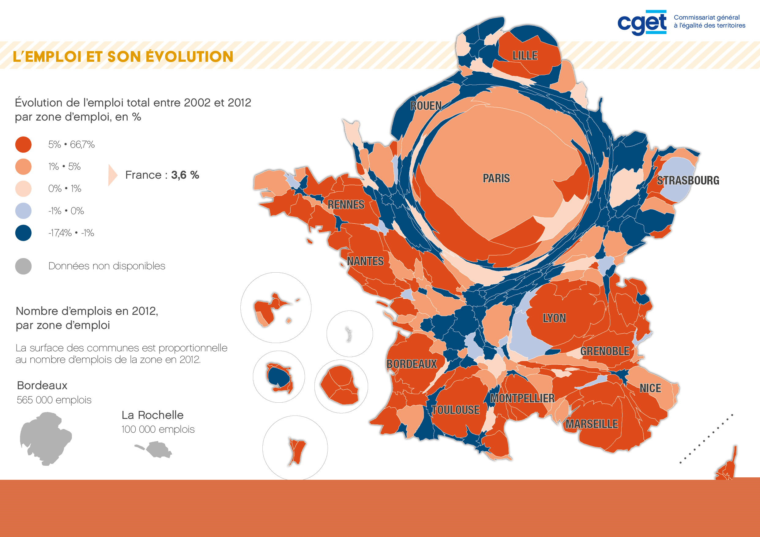 Source: CGET service cartographie • Insee Estimations d'emploi localisées 2002-2012