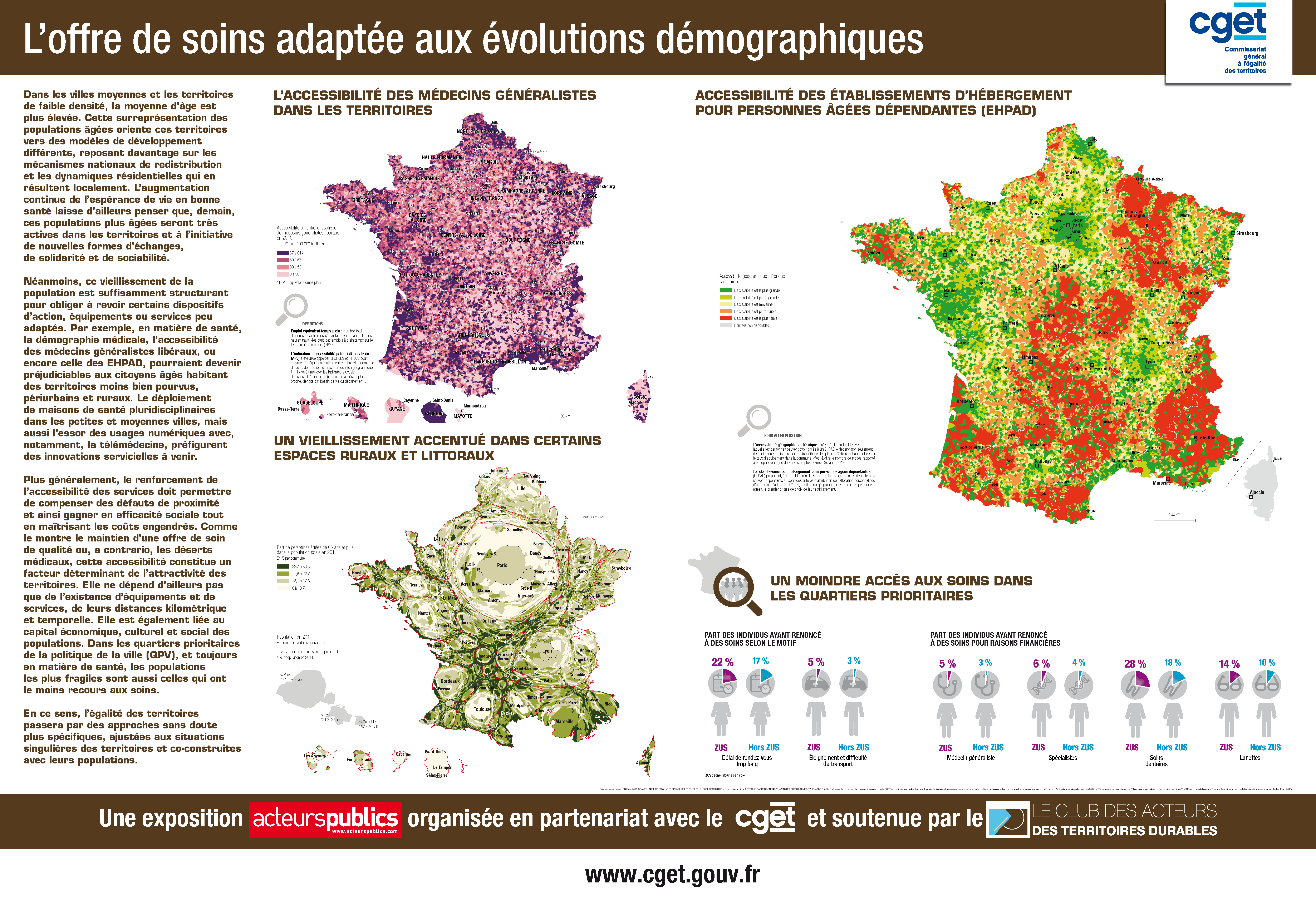 Le Commissariat général à l’égalité des territoires a conçu en partenariat avec Acteurs publics une exposition cartographique intitulée « habiter durablement de territoires » ; les cartes sont accompagnées de récits qui resituent les espaces français dans leurs dynamiques, marquent la diversité de leur trajectoire et soulignent certaines des difficultés qui en ressortent, en particulier en matière d’inégalités territoriales.