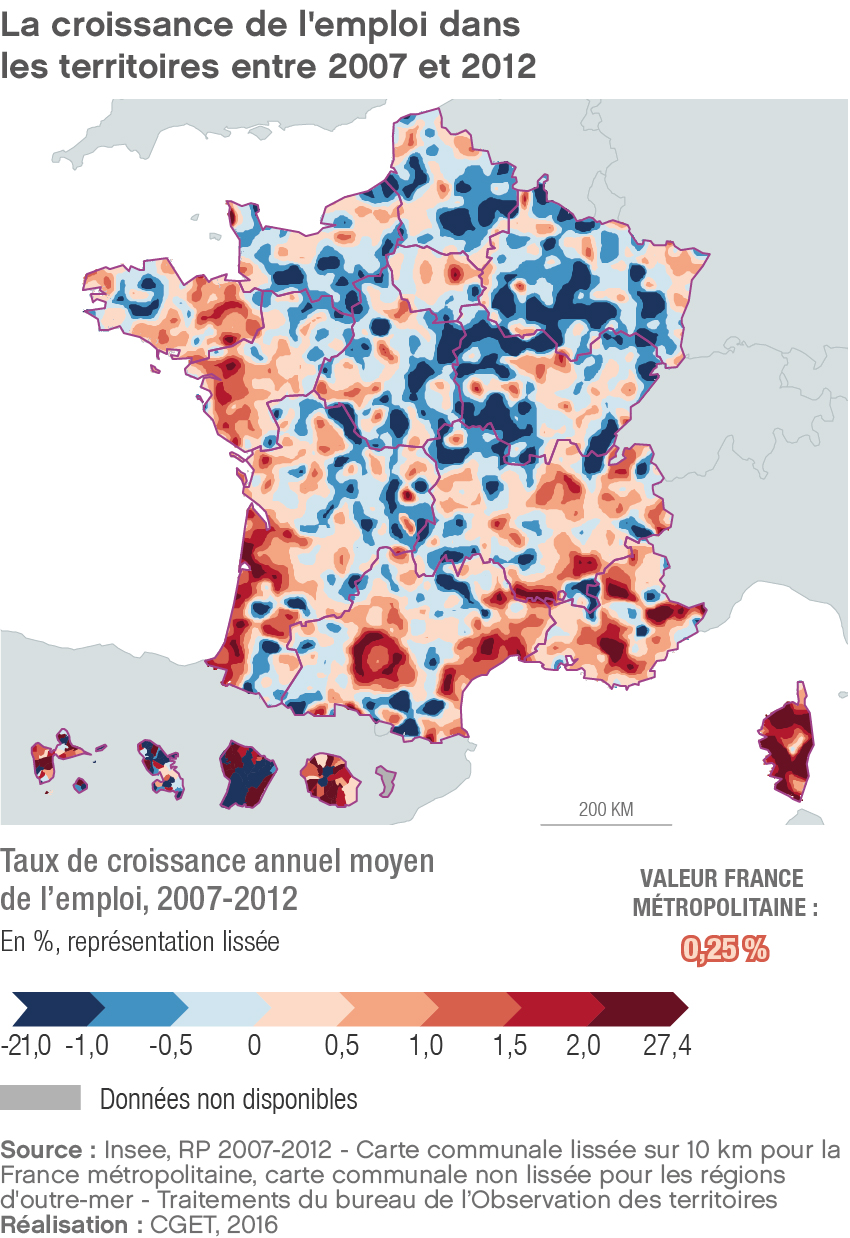 Source: La croissance de l'emploi dans les territoires entre 2007 et 2012