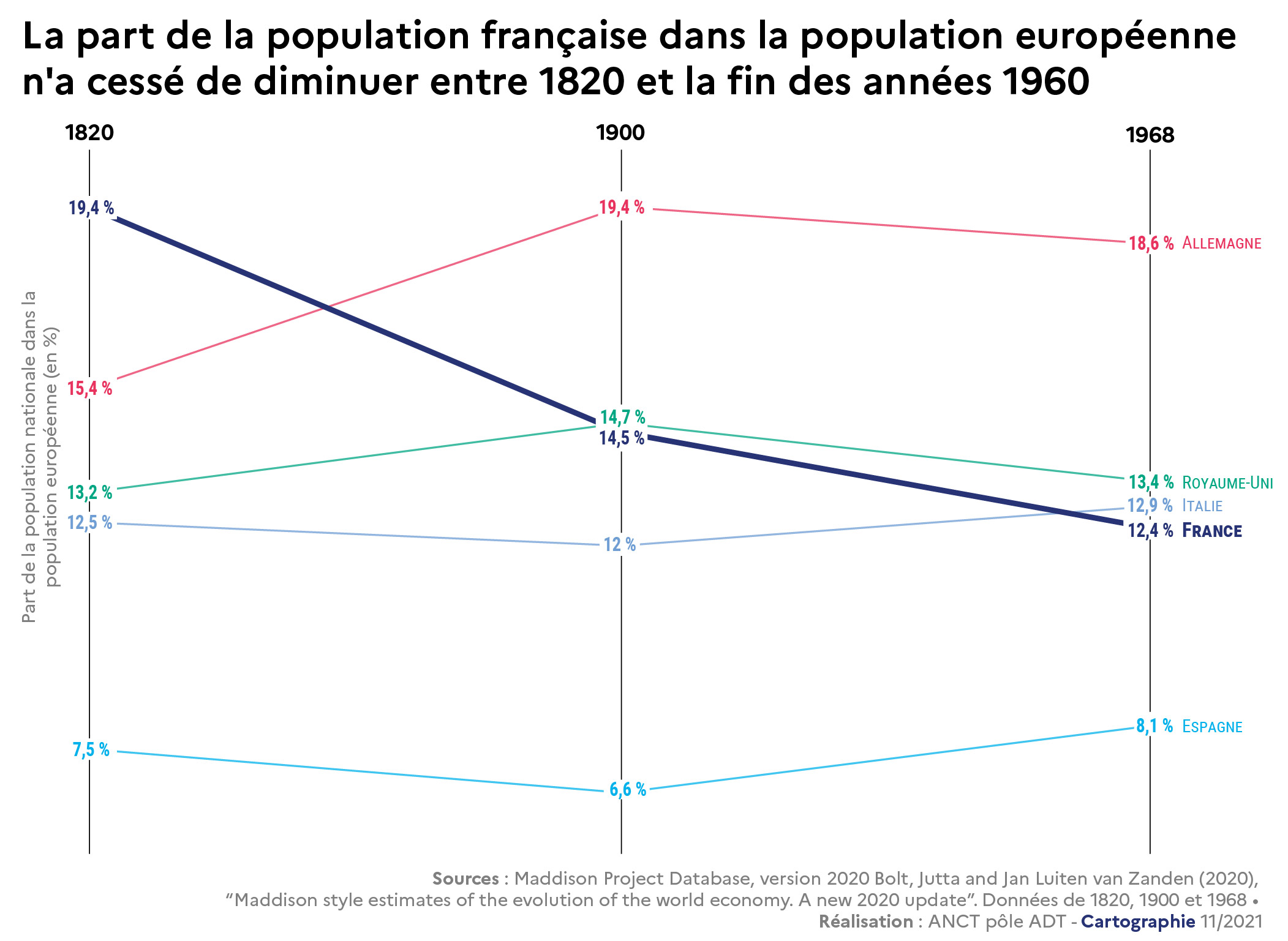 Type: La part de la population française dans la population européenne n'a cessé de diminuer entre 1820 et la fin des années 1960