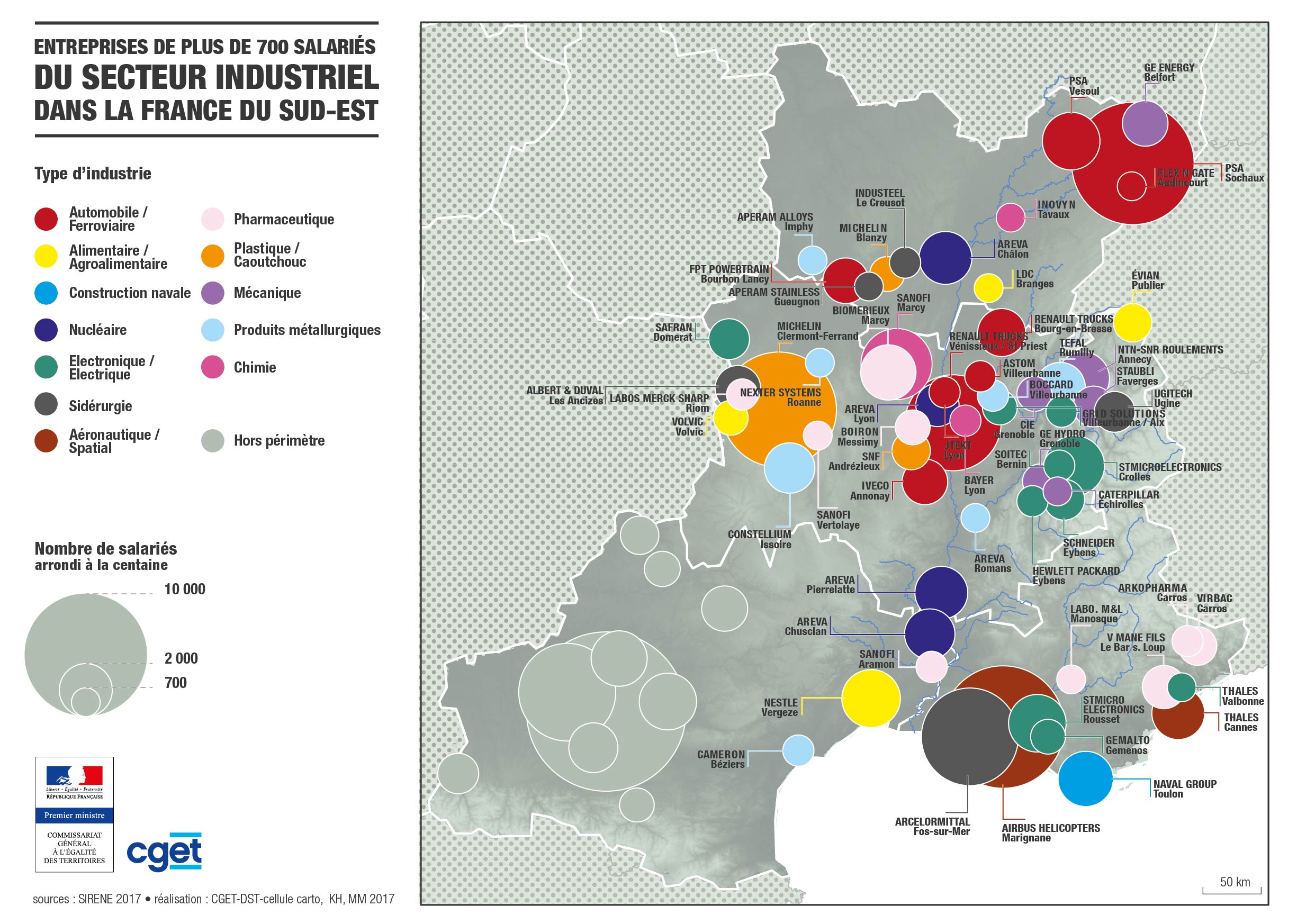 Les entreprises de plus de 700 salariés du secteur industriel dans la France du Sud-Est